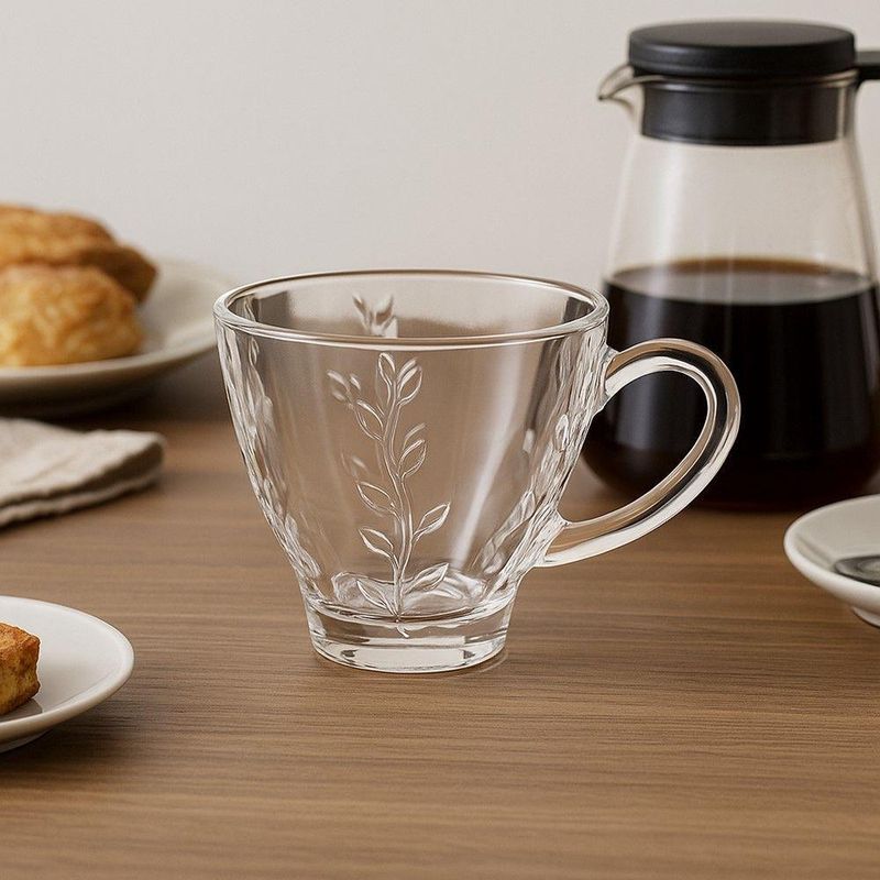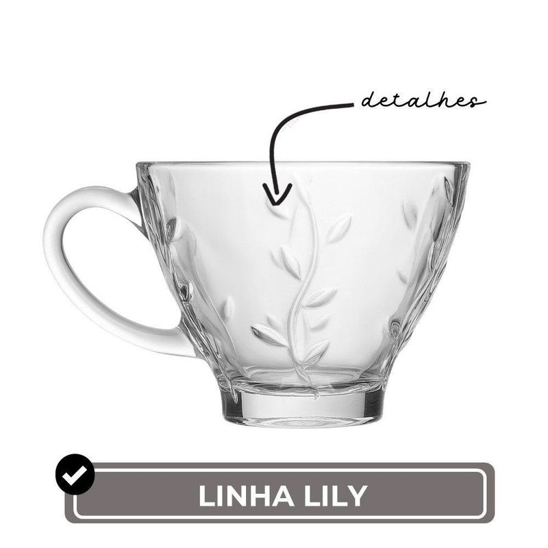 Jogo 2 Xícara De Chá De Vidro Flores Clear Lily 220ml Em Casa TemJogo 2 Xícara de Chá de Vidro Flores Clear Lily 220ml Em Casa TemA xícara de chá de vidro da marca Em Casa Tem combina elegância e funcionalidade em um design delicado com capacidade para 220ml. Produzida em vidro transparente de alta qualidade, ela apresenta um acabamento texturizado com relevo em forma de ramos e folhas, oferecendo um toque decorativo e sofisticado à peça sem comprometer sua leveza visual.Seu formato cônico com base reforçada proporciona maior estabilidade à xícara, enquanto a alça arredondada garante uma pegada confortável e segura. Ideal para o consumo de chás quentes ou frios, seu design valoriza a apresentação da bebida, realçando a cor e o conteúdo servido.Versátil e resistente, essa xícara é uma excelente escolha tanto para o uso diário quanto para compor mesas postas em ocasiões especiais. Pode ser combinada com bules e garrafas de vidro ou inox, criando composições harmônicas e contemporâneas.Características:- Material: Vidro transparente com relevo decorativo- Uso indicado: Chá e outras bebidas quentes ou frias- Formato: Cônico com base espessa e alça lateral- Não recomendada para uso em micro-ondas ou com líquidos ferventes diretamente do fogo- Ideal para quem busca funcionalidade com um toque de delicadeza para o momento do chá.Xícara de Chá de Vidro Flores Clear Lily 220ml Em Casa TemCódigo: 127021Referênica: 18092Marca: EmCasaTemMaterial: VidroCor: TransparenteDimensões do produto (AxLxC): 7,50x9,00x9,00cm cada unidadeQuantidade: Kit com 2 unidades