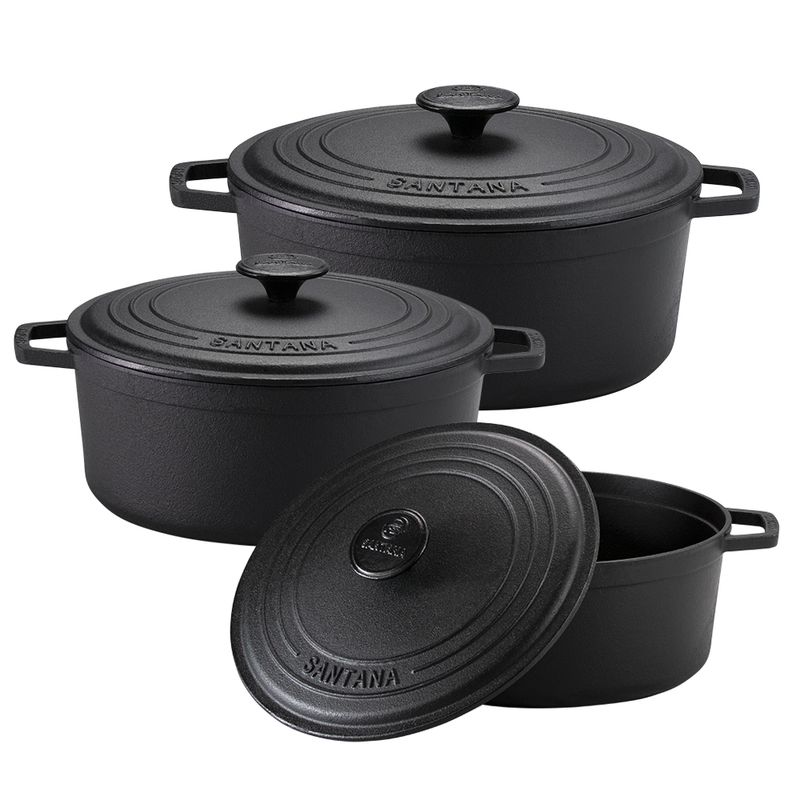 Apresentamos a você o Jogo de Panelas NEO de Ferro Fundido, o conjunto perfeito para transformar sua cozinha em um verdadeiro templo gastronômico. Com tamanhos de 16, 18, 20, 22 e 24 com tampa esse jogo de panelas oferece uma série de benefícios e vantagens, além de inspirar você com ideias deliciosas de receitas.Com diferentes tamanhos de panelas à sua disposição, o Jogo de Panelas NEO proporciona uma versatilidade incrível na preparação de suas refeições. Desde ensopados e cozidos até grelhados e frituras, cada panela é projetada para atender a diferentes necessidades culinárias, permitindo que você explore uma ampla variedade de técnicas e sabores. Adquira agora mesmo o Jogo de Panelas NEO de Ferro Fundido e eleve sua experiência culinária a um novo patamar. Desfrute da versatilidade, durabilidade e sabor autêntico que essas panelas proporcionam. Transforme sua cozinha em um verdadeiro cenário gastronômico e crie momentos inesquecíveis à mesa. Material: Ferro Fundido.Pegada: Duas alças de ferroGarantia: 90 dias contra defeito de fabricação.Acompanha: Tampa de ferro. Descrição do jogo Panela1: Medidas NEO 16 (Diâmetro x Comprimento x Altura): 16Ø x 22 x 7,5cmPeso NEO 16: 2,35kgLitragem NEO 16:1,2L Panela 2:Medidas NEO 18 (Diâmetro x Comprimento x Altura): 18Ø x 24,6 x 7,5cmPeso NEO 18: 2,95kgLitragem NEO 18: 1,7L Panela 3:Medidas NEO 20 (Diâmetro x Comprimento x Altura): 20Ø x 25 x 8,0cmPeso NEO 20: 3,40kgLitragem NEO 20: 2,3L IMPORTANTE:-Antes de usar pela primeira vez, encha com água e ferva por alguns minutos.-Ainda quente remova essa água com cuidado e lave com uma esponja macia- Lave bem, seque-a na chama do fogão. Assim ela estará pronta para o uso-Sempre secar na chama do fogão antes de guardar e também pode passar uma fina camada de óleo para proteger contra ferrugem. Nós da Casa E jardim Comércio trabalhamos com produtos de alta qualidade em ferro fundido, Como Fornos de ferro, panelas de ferro mineira, chapas de fogão a lenha, frigideira de ferro Casa e Jardim, chapa bifeteira de ferro, Fogareiro Ferro Fundido A Alcool Rechaud, calderão de ferro, calderão de bruxa, Rechaud de ferro, Chapa de ferro Casa e Jardim para porções, panelas de ferro, churrasqueiras a bafo toda linha doméstica para lhe atender.