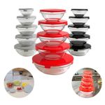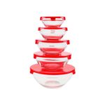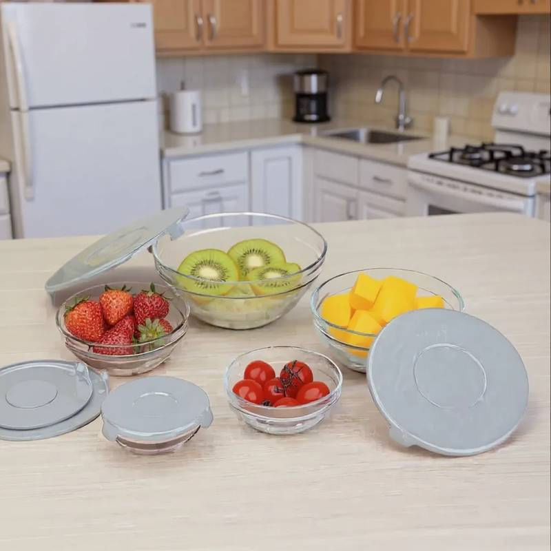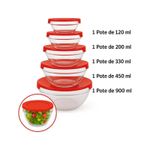 Jogo 5 Potes de Vidro c/ Tampa 120ml/200ml/330ml/450ml/900ml ===================================== Produzidos em vidro transparente resistente, os potes não retêm odores nem sabores, além de permitirem fácil visualização do conteúdo. Cada pote acompanha tampa plástica com vedação eficiente, ideal para conservar os alimentos por mais tempo, evitar vazamentos e facilitar o transporte. Ideal para guardar grãos, temperos, snacks, frutas, marmitas ou sobras de refeições. Além de funcionais, os potes têm design elegante e são reutilizáveis, representando uma alternativa mais sustentável ao plástico descartável. Leves e compactos, são ideais tanto para uso doméstico quanto para levar alimentos ao trabalho ou em viagens ===================================== Contém: 05 Potes Especificação: - Material: Vidro e Plástico - Pote de 120ml / 09cm - Pote de 200ml / 10cm - Pote de 330ml / 12,5cm - Pote de 450ml / 14,5cm - Pote de 900ml / 17cm - Livre de BPA - Empilhável - Cor enviada de forma aleatória conforme disponibilidade em estoque ===================================== Devido à diferença entre monitores e iluminação diferentes, pode haver variação na tonalidade apresentada no anúncio. Medidas muito aproximadas.