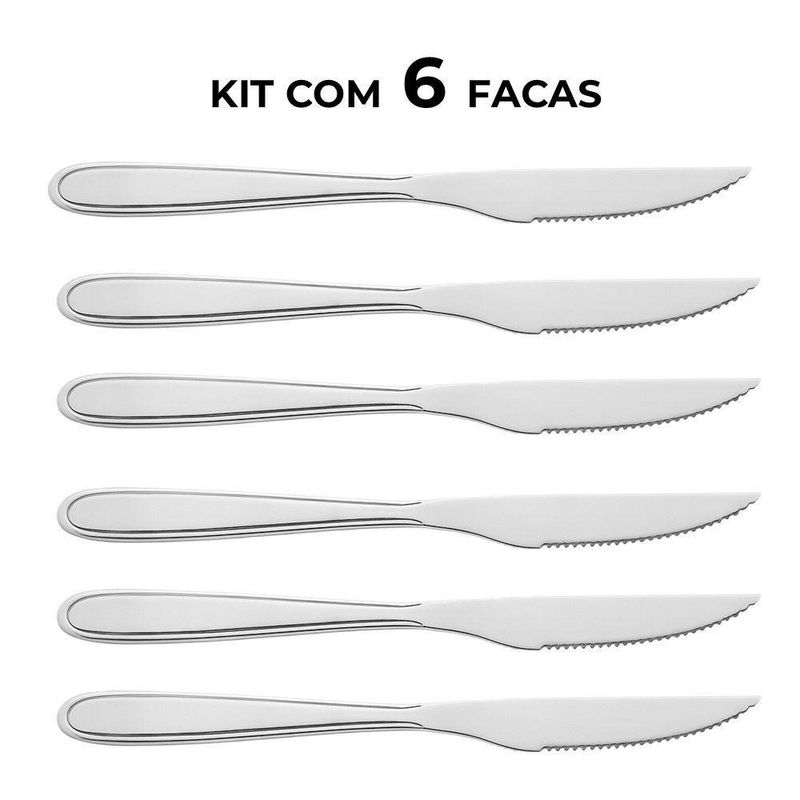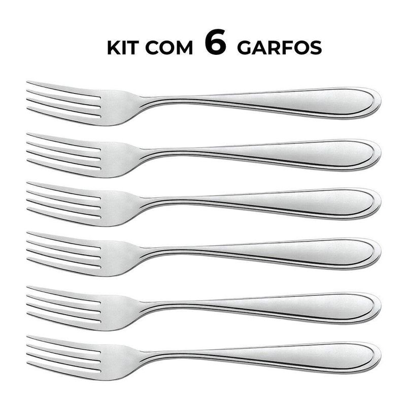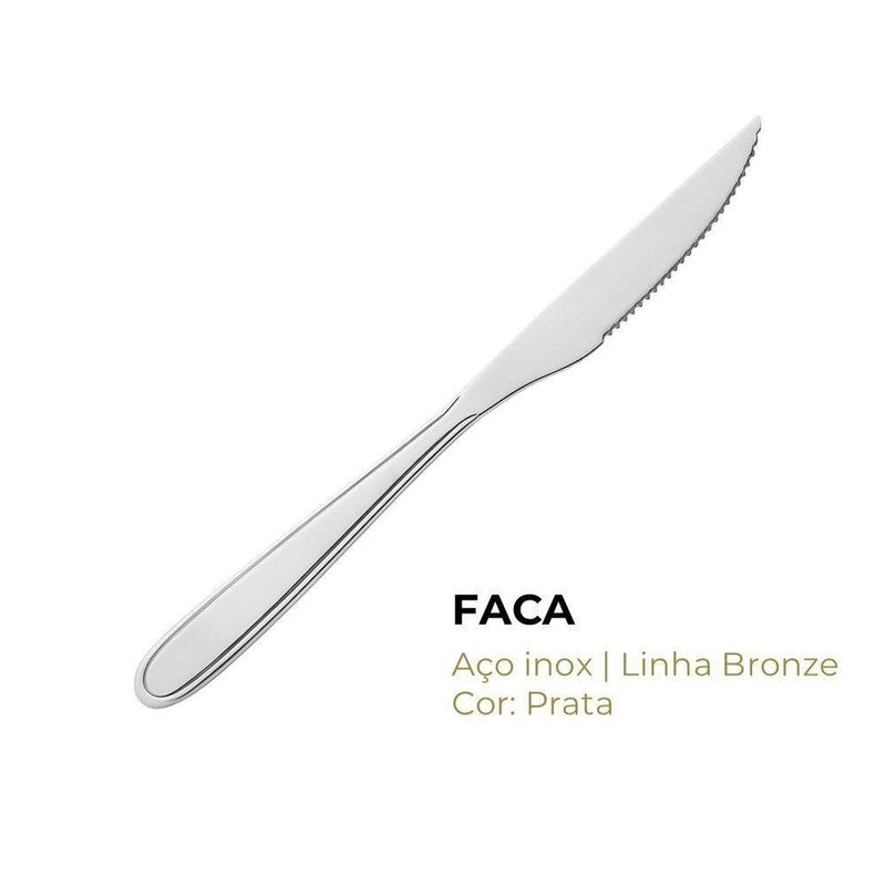 Jogo 6 Garfos E 6 Facas Aço Inox Prata Em Casa Tem Linha BronzeJogo 6 Garfos e 6 Facas Aço Inox Prata Em Casa Tem Linha BronzeO Kit vem com:6 Garfos6 FacasO conjunto de garfos e facas em aço inoxidável contribui para a composição de mesas em diversas ocasiões, oferecendo resistência e durabilidade ao uso contínuo. Cada garfo é fabricado em aço inoxidável, o que previne a corrosão e facilita a higienização, sendo adequado para lavagens frequentes e sem retenção de odores ou sabores. A superfície do metal evita a aderência de resíduos, mantendo a neutralidade do material em contato com os alimentos.As tines (dentes) dos garfos são projetadas para auxiliar na apreensão e transporte eficiente de alimentos sólidos, mantendo a estabilidade. O balanceamento do cabo é calibrado para proporcionar um manuseio firme e confortável, reduzindo o esforço em refeições prolongadas. O acabamento em prata integra-se harmoniosamente com diferentes estilos de louça e decorações de mesa, conferindo uniformidade visual ao ambiente.Conteúdo do Kit:Jogo 6 Garfos Aço Inox Prata Em Casa Tem Linha BronzeCódigo: 127646Marca: EmCasaTemMaterial: Aço InoxDimensões do produto (AxLxC): 2,00x19,50x0,30cm cada unidadeQuantidade: 1 unidadeJogo 6 Facas Aço Inox Prata Em Casa Tem Linha BronzeCódigo: 127645Marca: EmCasaTemMaterial: Aço InoxDimensões do produto (AxLxC): 21,00x2,00x0,30cm cada unidadeQuantidade: 1 unidade