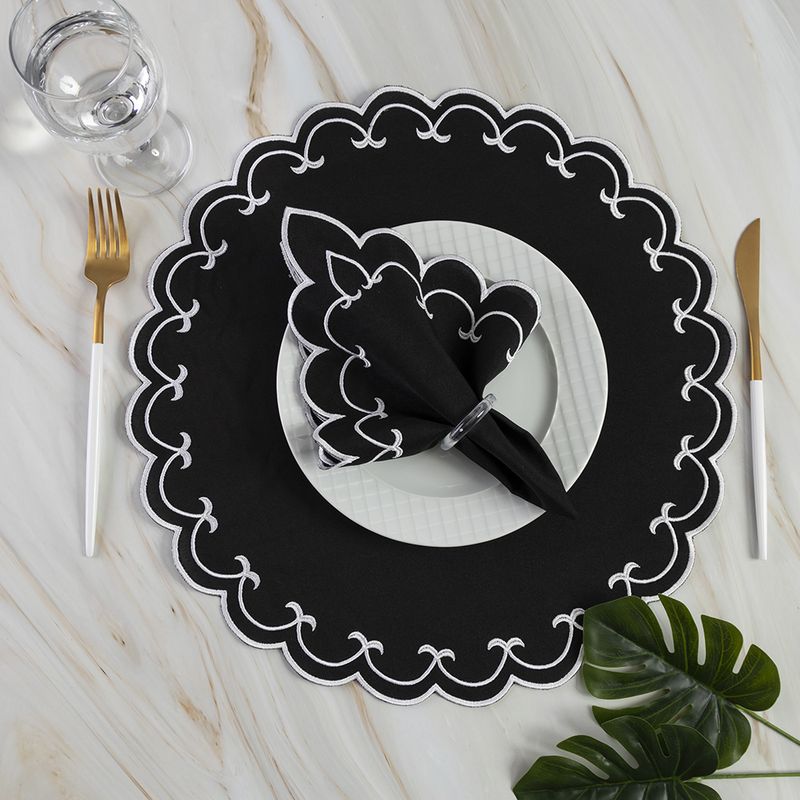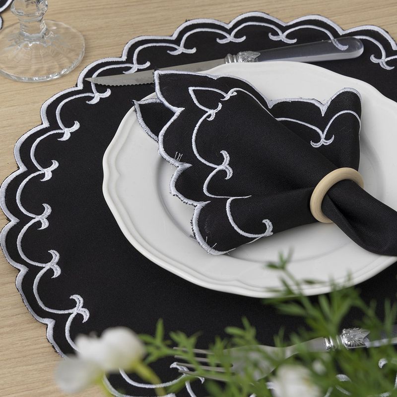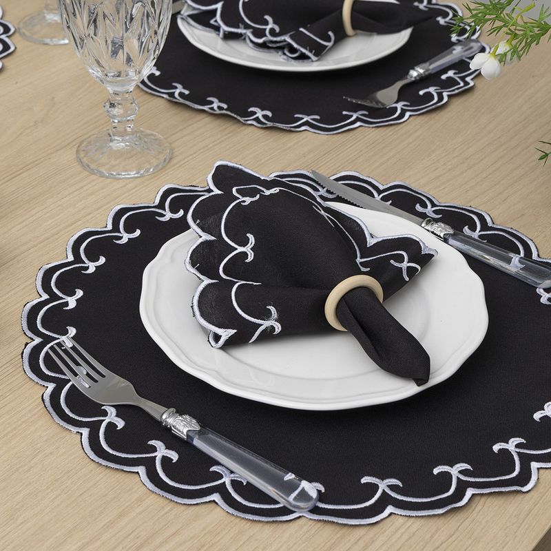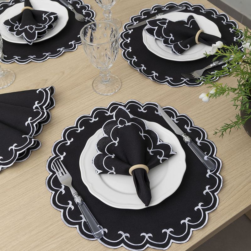 Jogo Americano Bordado 12 Peças Stillus - Preto - 100% Poliéster