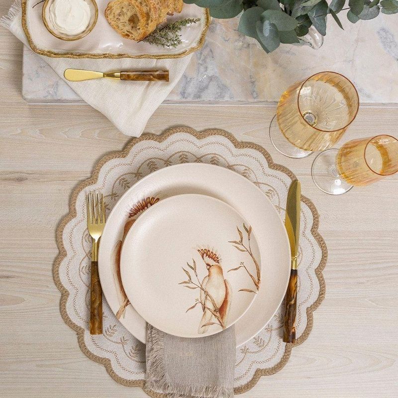 Jogo Americano Copa E Cia Avulso Bossa Brazil Amélia AreiaJogo Americano Copa e Cia Avulso Bossa Brazil Amélia Areia -Características Gerais do Produto: - Composição: 89% Poliéster, 11% Poliamida.; Algodão; Poliéster; Poliamida - Detalhes: Peça Vendida de Forma Individual.; Design Exclusivo Copa&Cia.; As cores podem sofrer pequenas alterações de cor, variando de monitor para monitor.; Os objetos que ambientam as fotos não acompanham o produto.; As fotos produzidas são apenas como sugestão de uso com as demais peças da coleção. - Cuidados: Não Deixar de Molho.; Armazenar em local seco e arejado.; Evitar contato com objetos cortantes ou superaquecidos.; Não molhar; Não amassar; Não torcer ou dobrar totalmente o produto.; Não utilizar solventes, abrasivos ou alvejantes.; Limpar manualmente com pano úmido e detergente neutro.; Manter o produto na horizontal - Dimensões (cm): Diâmetro: 40 cmAcompanha o produto: - 1 Peça de Jogo Americano Garantia: - 7 dias/30 dias contra defeito de fabricação