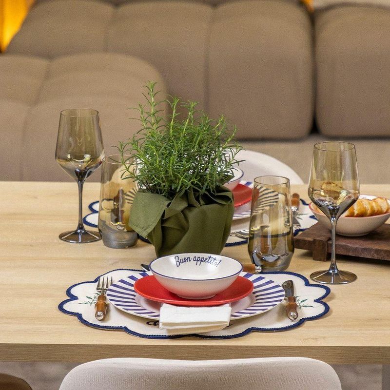 Jogo Americano Copa E Cia Avulso Bossa Brazil Spritz E CarbonaraJogo Americano Copa e Cia Avulso Bossa Brazil Spritz e Carbonara -Características Gerais do Produto: - Composição: Composto por algodão, poliéster e poliamida. - Detalhes: Produto produzido no Brasil.; Peça Vendida de Forma Individual.; Design Exclusivo Copa&Cia.; As cores podem sofrer pequenas alterações de cor, variando de monitor para monitor.; Os objetos que ambientam as fotos não acompanham o produto.; As fotos produzidas são apenas como sugestão de uso com as demais peças da coleção. - Cuidados: Não Deixar de Molho.; Não recomendado limpar a seco.; Armazenar em local seco e arejado.; Evitar contato com objetos cortantes ou superaquecidos.; Não molhar; Não amassar; Não torcer ou dobrar totalmente o produto.; Não utilizar solventes, abrasivos ou alvejantes.; Limpar manualmente com pano úmido e detergente neutro.; Não secar ao sol.; Manter o produto na horizontal - Dimensões (cm): Largura: 40 cm; Comprimento: 45 cmAcompanha o produto: - 1 Peça de Jogo Americano Garantia: - 7 dias/30 dias contra defeito de fabricação