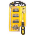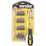 Jogo Bits Ponteiras 1/4 Com 32 Pç Cromo Vanádio Vonder PlusConteúdo da embalagem1 Jogo de bits/ponteiras, encaixe sextavado 1/4, com 32 peças, sendo: 1 cabo adaptador, 1 extensão flexível, 1 nível portátil com escala, base e ponta magnética, 1 haste com encaixe magnético e extensão magnética, 7 bits fenda (3 mm, 4 mm, 5 mm, 5 mm, 6 mm, 6 mm e 7 mm), 7 bits phillips números (0, 1, 1, 2, 2, 3 e 3), 7 bits hexalobular (T10, T15, T20, T25, T27, T30 e T40) e 7 soquetes sextavados internos (5 mm, 6 mm, 7 mm, 8 mm, 9 mm, 10 mm e 11 mm)Aplicações e dicas de usoIndicado para fixar e soltar parafusos em geralDestaques e diferenciaisCabo adaptador anatômico em polipropileno, revestido com borracha termoplástica, proporcionando melhor manuseio e maior conforto. Nível com base e ponta magnética que auxiliam no trabalho com peças metálicas, além de haste extensível com encaixe e ponta magnética que facilitam a pega de parafusos ou peças metálicas que caiam em locais de difícil acesso. Conta ainda com extensão flexível que possibilita a colocação e a retirada de parafusos em locais de difícil acesso.DETALHES TÉCNICOSMaterial do Bits ponteira:Aço cromo vanádioAcabamento do Bits:FosfatizadoTipo do encaixe do bits:Sextavado - 1/4Comprimento total do bits/ponteira:7 bits fenda - 25 mm / 7 phillips - 25 mm / 7 torx - 25 mm / 7 soquetes - 40 mm Tipo de Produto: Furadeira/Parafusadeira | É kit de Fábrica: Sim | Tipo de ferramenta: Elétrico