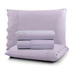 Jogo Cama Casal Cherry Bordado Inglês 4pç 100% Poliéster - LilasO Jogo de lençol para cama Casal Padrão com 04 peças confeccionado em tecido Micropercal 200 fios, detalhes em bordado inglês na fronha e no lençol de cima. Possui alto padrão de qualidade, proporciona conforto e sofisticação.Contém na embalagem:01 Lençol superior Comp (2,50m) x Larg (2,25m)01 Lençol de baixo com elástico (2,50m) x (2,25m) para colchão de (1,88m)x(1,38cm)x(30cm)02 Fronhas Comp (70cm) x Larg (50cm)*Observações: Considere as medidas e formatos especificados na descrição do produto.* DECORAÇÃO LUXUOSA DE ALTO PADRÃOComposição: 100% Poliéster*As fotos são meramente ilustrativas.*As cores podem variar de acordo com cada monitor e não representam todas as peças que compõem a descrição do produto.*Fique atento à descrição do produto.
