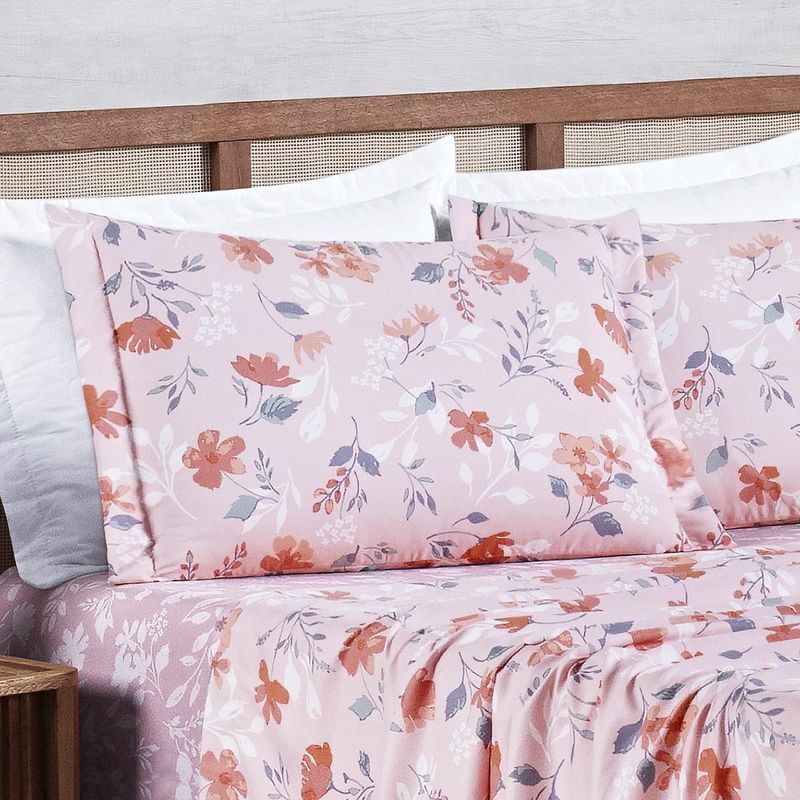 Jogo Cama Lençol Belle Casal Padrão 400 Fios Estampado 4 Peças Floral Rosê