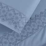 Jogo Cama Lençol Bouclê Casal Padrão Micro Percal 200 Fios c/ Laise Bordada 4 Peças - Azul Ice Blue