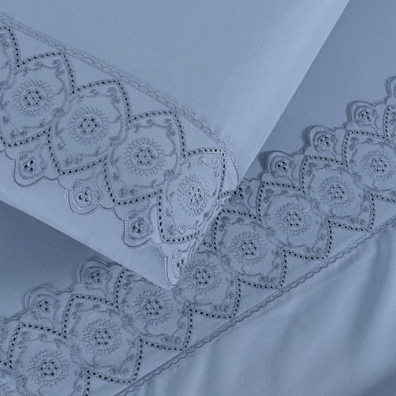 ColchõesAcessórios para CamaJogo de CamaJogo Cama Lençol Bouclê Casal Padrão Micro Percal 200 Fios c/ Laise Bordada 4 Peças - Azul Ice Blue