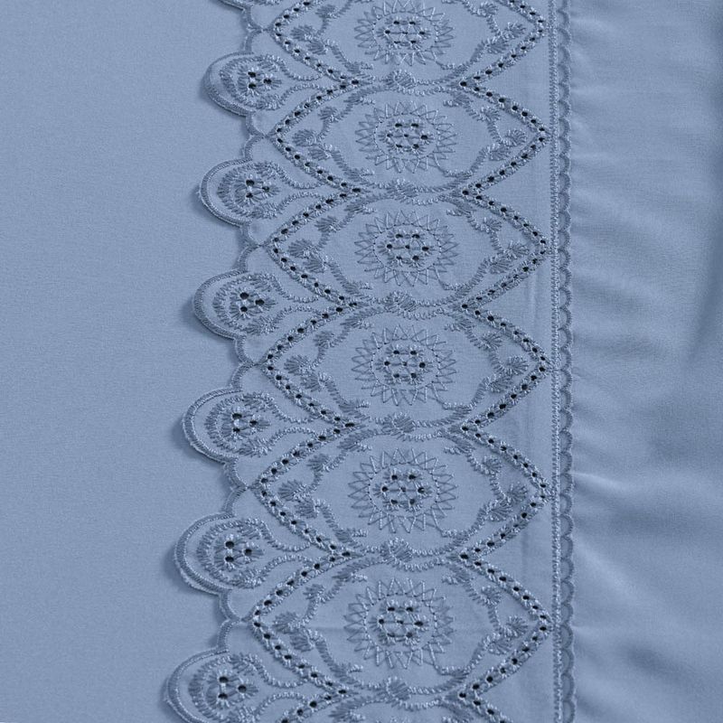 Jogo Cama Lençol Bouclê Solteiro Micro Percal 200 Fios c/ Laise Bordada 3 Peças - Azul Ice Blue