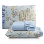 ColchõesAcessórios para CamaJogo de CamaJogo Cama Lençol Fiore Casal Padrão Estampado 180 Fios 100% Algodão com Babadinho 3 Peças Azul Floral