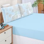 Jogo Cama Lençol Fiore Casal Padrão Estampado 180 Fios 100% Algodão com Babadinho 3 Peças Azul Floral