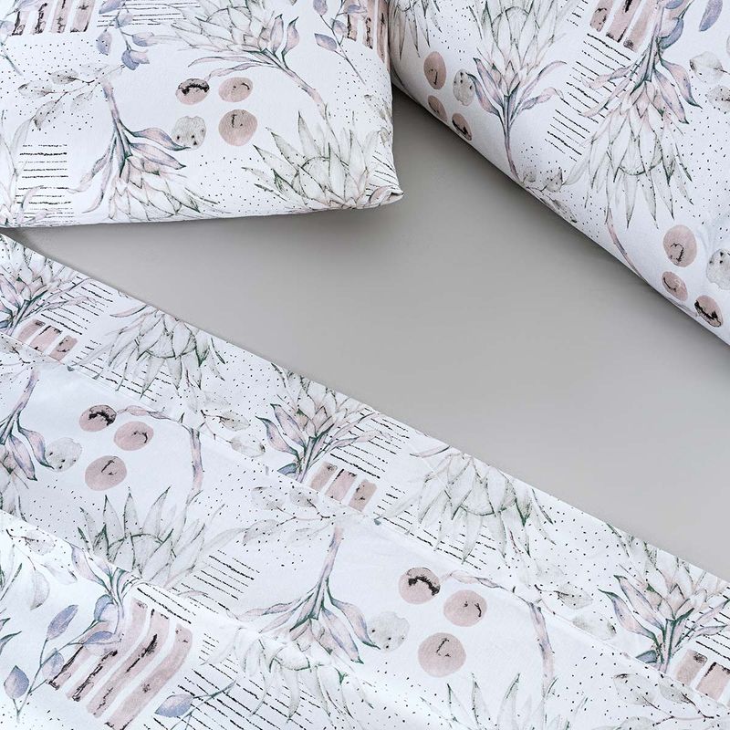 Jogo Cama Lençol Maris King Percalle 200 Fios Estampado 4 Peças Protea Cinza