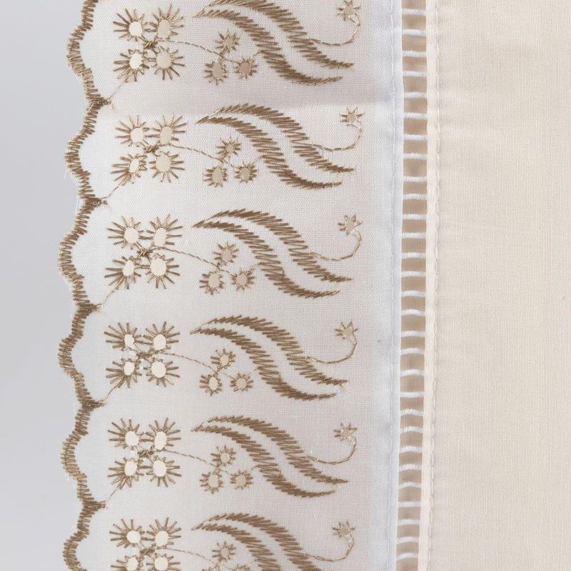 Jogo Cama Lençol Paris Queen Percal 180 Fios 100% Algodão Lese Bordada 4 Peças - PalhaTransforme seu quarto em um verdadeiro refúgio de conforto e elegância com nosso Jogo de Lençol Paris com Lese Bordada, confeccionado em Percal 180 fios 100% algodão. Este conjunto premium é a escolha ideal para quem busca sofisticação e qualidade em cada detalhe.Características:Material: Percal 180 fios 100% algodão, proporcionando maciez e durabilidade excepcionais.Detalhe: Delicada lese bordada, adicionando um toque de charme e requinte ao seu enxoval.Conforto: Tecido respirável e suave ao toque, garantindo noites de sono mais confortáveis e revigorantes.Durabilidade: Alta resistência e fácil manutenção, mantendo a beleza e integridade das peças por muito mais tempo.Praticidade no Dia a Dia:- Fácil de lavar e secar, é ideal para quem busca praticidade no dia a dia.- O Lençol de baixo com elástico em toda a volta garante um ajuste perfeito ao seu colchão, sem amassar ou sair do lugar durante a noite. Diga adeus aos lençóis que se enrolam e desajeitam!Contém na embalagem:01 Lençol de Cima 2,50m x 2,40m01 Lençol de Baixo c/ Elástico 2,50m x 2,20m p/ colchão 1,98m X 1,58m X 30cm alt.02 Fronhas 70cm x 50cmComposição:Tecido - 100% Algodão - Percal 180 FiosAs fotos são meramente ilustrativas. As cores podem variar de acordo com cada monitor e não representam todas as peças que compõem a descrição do produto. Fique atento à descrição do produto.