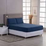 Jogo Cama Lençol Sonnet Casal Padrão Malha Lisa 100% Algodão Macio 3 Peças - Azul Marinho