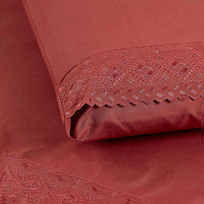 Jogo Cama Queen Cherry Bordado Inglês 4pç 100% Poliéster - CanelO Jogo de lençol para cama Queen com 04 peças confeccionado em tecido Micropercal 200 fios, detalhes em bordado inglês na fronha e no lençol de cima. Possui alto padrão de qualidade, proporciona conforto e sofisticação.Contém na embalagem:01 Lençol superior Comp (2,50m) x Larg (2,40m)01 Lençol de baixo com elástico (2,50m) x (2,40m) para colchão de (1,98m)x(1,58cm)x(38cm)02 Fronhas Comp (70cm) x Larg (50cm)*Observações: Considere as medidas e formatos especificados na descrição do produto.* DECORAÇÃO LUXUOSA DE ALTO PADRÃOComposição: 100% Poliéster*As fotos são meramente ilustrativas.*As cores podem variar de acordo com cada monitor e não representam todas as peças que compõem a descrição do produto.*Fique atento à descrição do produto.