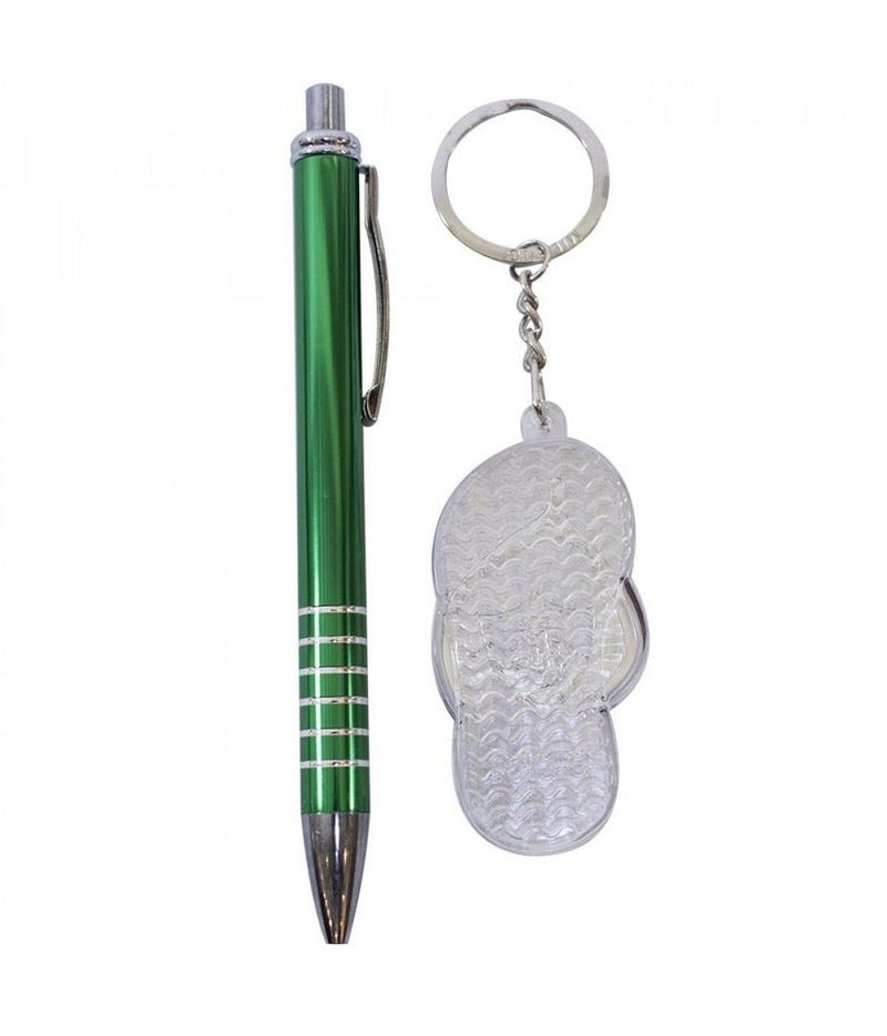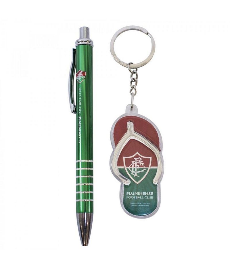 Jogo Caneta e Chaveiro Chinelo Fluminense Oficial Jogo com uma caneta roller de metal e chaveiro em forma de chinelo do Fluminense. Material caneta: metal; Material chaveiro: acrílico Informação Adicional Código 2107A-8-B Peso (Kg) 0.06 Altura (cm) 18.00 Largura (cm) 8.00 Comprimento (cm) 2.00