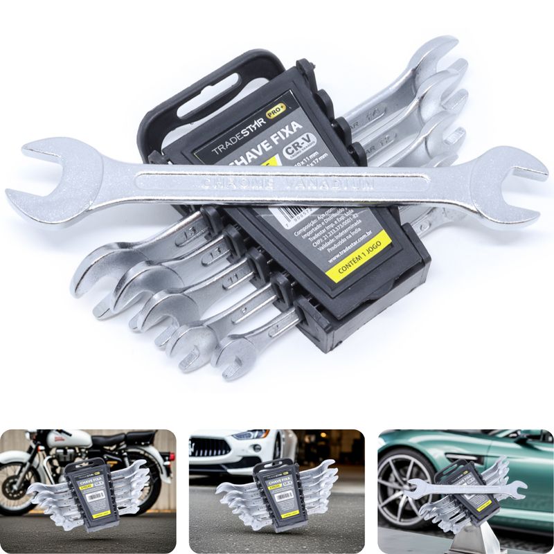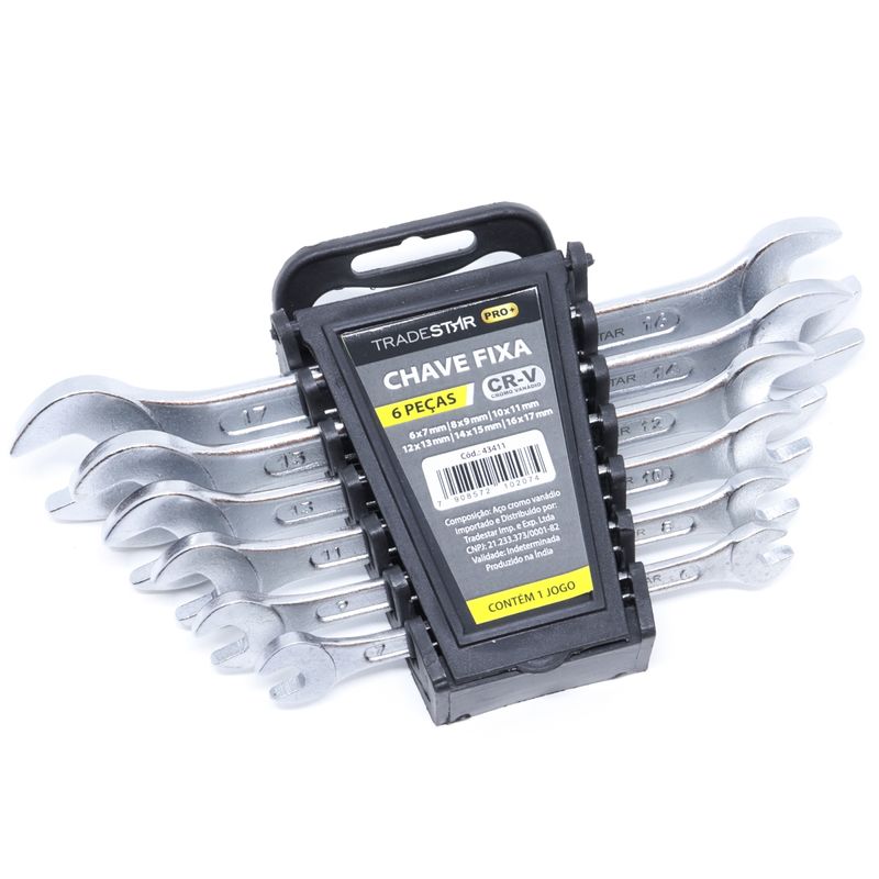Kit Chave Fixa Tradestar 6 mm - 17 mm 6 Peças Cromo VanádioO Kit de Chaves Boca Fixa Tradestar 6 Peças é a ferramenta ideal para quem busca versatilidade, durabilidade e precisão no aperto ou desaperto de porcas e parafusos sextavados. Fabricadas em Cromo Vanádio de alta resistência, estas chaves foram desenvolvidas para profissionais e entusiastas do faça-você-mesmo, garantindo desempenho confiável em uma ampla variedade de aplicações.Composto por 6 pares de tamanhos essenciais — 6x7 mm, 8x9 mm, 10x11 mm, 12x13 mm, 14x15 mm e 16x17 mm — o kit atende perfeitamente às demandas de oficinas, manutenção industrial, reparos domésticos e projetos de bricolagem. Cada chave possui lado fixo, permitindo alternar facilmente entre diferentes medidas e agilizando o trabalho.O design do Kit Chave Fixa Tradestar prioriza o conforto e a ergonomia. As chaves apresentam empunhadura segura e firme, reduzindo a fadiga durante o uso prolongado, enquanto os tamanhos são claramente marcados para facilitar a identificação rápida da ferramenta adequada.Fabricadas por uma marca de confiança, estas chaves oferecem durabilidade garantida, resistindo ao desgaste mesmo em trabalhos contínuos ou aplicações exigentes. O Cromo Vanádio tratado proporciona resistência à deformação, garantindo que cada chave mantenha seu formato e eficiência ao longo do tempo.Este conjunto é indispensável para profissionais de mecânica, marcenaria, eletricidade e manutenção, assim como para qualquer entusiasta que valorize ferramentas confiáveis, seguras e de alto desempenho. Ter um kit completo de chaves boca fixa à mão significa mais rapidez, precisão e eficiência em qualquer tarefa de aperto ou desmontagem.Especificações- Material: Cromo Vanádio de alta resistência- Medidas: 6x7 mm / 8x9 mm / 10x11 mm / 12x13 mm / 14x15 mm / 16x17 mm- Quantidade de peças: 6 unidades- Acabamento: Tratamento especial contra oxidação- Uso: Aperto e desaperto de porcas e parafusos sextavadosItens inclusos- 1 Jogo Chave Fixa 6-17 mm 6 Peças Cromo VanádioGarantia- 03 meses com o Fabricante