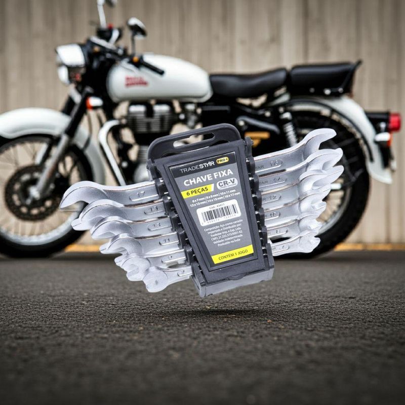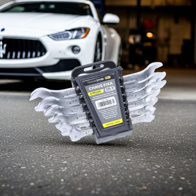 Jogo Chave Fixa 6-17 Mm 6 Peças Cr-v TradestarKit Chave Fixa Tradestar 6 mm - 17 mm 6 Peças Cromo VanádioO Kit de Chaves Boca Fixa Tradestar 6 Peças é a ferramenta ideal para quem busca versatilidade, durabilidade e precisão no aperto ou desaperto de porcas e parafusos sextavados. Fabricadas em Cromo Vanádio de alta resistência, estas chaves foram desenvolvidas para profissionais e entusiastas do faça-você-mesmo, garantindo desempenho confiável em uma ampla variedade de aplicações.Composto por 6 pares de tamanhos essenciais — 6x7 mm, 8x9 mm, 10x11 mm, 12x13 mm, 14x15 mm e 16x17 mm — o kit atende perfeitamente às demandas de oficinas, manutenção industrial, reparos domésticos e projetos de bricolagem. Cada chave possui lado fixo, permitindo alternar facilmente entre diferentes medidas e agilizando o trabalho.O design do Kit Chave Fixa Tradestar prioriza o conforto e a ergonomia. As chaves apresentam empunhadura segura e firme, reduzindo a fadiga durante o uso prolongado, enquanto os tamanhos são claramente marcados para facilitar a identificação rápida da ferramenta adequada.Fabricadas por uma marca de confiança, estas chaves oferecem durabilidade garantida, resistindo ao desgaste mesmo em trabalhos contínuos ou aplicações exigentes. O Cromo Vanádio tratado proporciona resistência à deformação, garantindo que cada chave mantenha seu formato e eficiência ao longo do tempo.Este conjunto é indispensável para profissionais de mecânica, marcenaria, eletricidade e manutenção, assim como para qualquer entusiasta que valorize ferramentas confiáveis, seguras e de alto desempenho. Ter um kit completo de chaves boca fixa à mão significa mais rapidez, precisão e eficiência em qualquer tarefa de aperto ou desmontagem.Especificações- Material: Cromo Vanádio de alta resistência- Medidas: 6x7 mm / 8x9 mm / 10x11 mm / 12x13 mm / 14x15 mm / 16x17 mm- Quantidade de peças: 6 unidades- Acabamento: Tratamento especial contra oxidação- Uso: Aperto e desaperto de porcas e parafusos sextavadosItens inclusos- 1 Jogo Chave Fixa 6-17 mm 6 Peças Cromo VanádioGarantia- 03 meses com o Fabricante NA