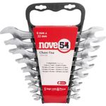 Jogo Chave Fixa 6-22mm Aço Carbono Com 8 Pç Suporte PlásticoConteúdo da embalagem1 Jogo de chaves fixas, composto por um suporte plástico com 8 peças, sendo: 6 mm x 7 mm, 8 mm x 9 mm, 10 mm x 11 mm, 12 mm x 13 mm, 14 mm x 15 mm, 16 mm x 17 mm, 18 mm x 19 mm e 20 mm x 22 mmAplicações e dicas de usoIndicado para apertar e soltar porcas e parafusos sextavados. Nunca utilizar prolongadores sobre as chaves, pois isso aumentará o torque aplicado e diminuirá a vida útil das ferramentas. Uso leve.Destaques e diferenciaisCorpo das chaves com acabamento cromado fosco, proporcionando maior resistência contra oxidação/corrosão. Possuem pontas estreitas que possibilitam o uso em locais de difícil acesso.DETALHES TÉCNICOS Material do corpo da chave: Aço carbono Acabamento da Chave: Cromado fosco Produto: Jogo | Tipo de chave: Combinada