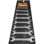 Jogo Chaves boca fixas 8 Peças Polegadas Tramontina Aço Especial Cromado Tramontina - O Jogo de Chaves Fixas Tramontina com Corpo em Aço Especial Cromado 8 Peças em polegadas é perfeito para compor sua caixa de ferramentas e lhe auxiliar nas mais diversas situações. As chaves são destinadas para apertar e afrouxar parafusos ou porcas com perfil quadrado ou sextravado. Seu dia a dia mais completo com a qualidade e facilidade que a Tramontina proporciona. Orientações Corpo forjado em aço especial e temperado.Acabamento cromado.Abertura das bocas calibradas.A avaliação de dureza é realizada em vários pontos para assegurar a resistência ao desgaste da chave durante o uso ininterrupto. As aberturas das bocas das chaves de aperto são verificadas com gabaritos calibrados, o que garante seu perfeito acoplamento nos parafusos.Alguns tipos de chaves de aperto são fornecidos em bitolas métricas e em polegadas, para o uso nos diversos fixadores disponíveis.As ferramentas são produzidas e testadas conforme normas específicas. Características Gerais EAN13 7891114000153 DUN14 17891114000150 NCM 8204.11.00 1,4700 kg. 1,5300 kg. Metragem 0,001922 m³. 305x 105x 60 mm. Observações Use óculos, luvas e outros equipamentos de proteção de acordo com a tarefa a ser executada. Não golpeie as chaves, a não ser que sejam projetadas para este fim. Sempre utilize uma chave de bitola correta para cada parafuso ou porca para que não haja folga, pois isso danifica a chave e o parafuso. Mantenha a chave limpa para um melhor agarre, pois usá-la suja com graxa ou óleo pode causar acidentes. Não use tubos ou extensões para obter mais torque. Não altere a forma original das chaves. Armazene em local limpo e seco. Características Gerais do Produto: Garantia: • 1 Ano
