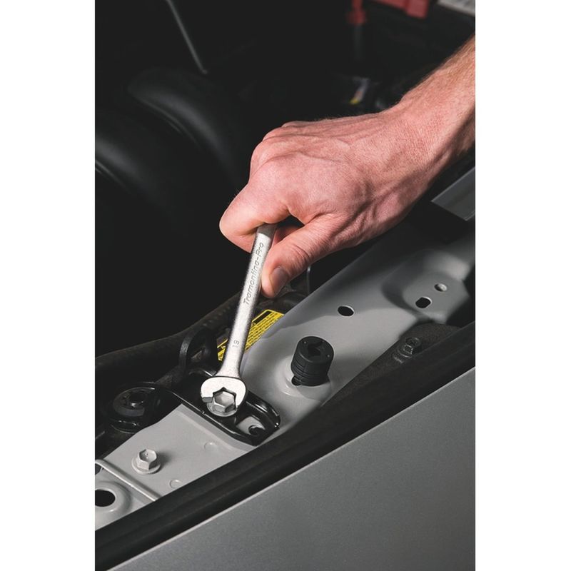 Jogo Chaves Combinadas Catraca 13 Peças Tramontina PRO Tramontina - Agilidade é com a chave combinada Superdrive da Tramontina PRO. Seu design exclusivo permite apertar parafusos e porcas sem precisar tirar a chave do parafuso ou porca a cada movimento. O mesmo acontece se inverter a chave para afrouxar. O lado estrela possui mecanismo com catraca, que permite realizar trabalhos com mais agilidade do que uma chave estrela comum. Além disso, sua construção robusta permite realizar apertos finais. Quem é PRO usa. Características Gerais do Produto: Garantia: • Garantia total contra vícios ou defeitos de fabricação.