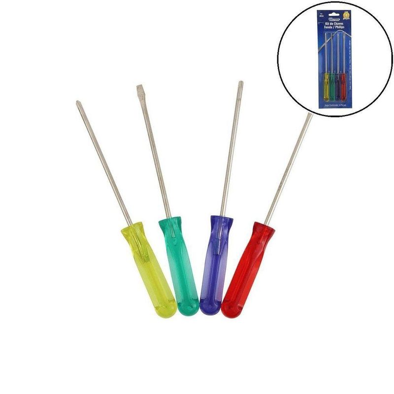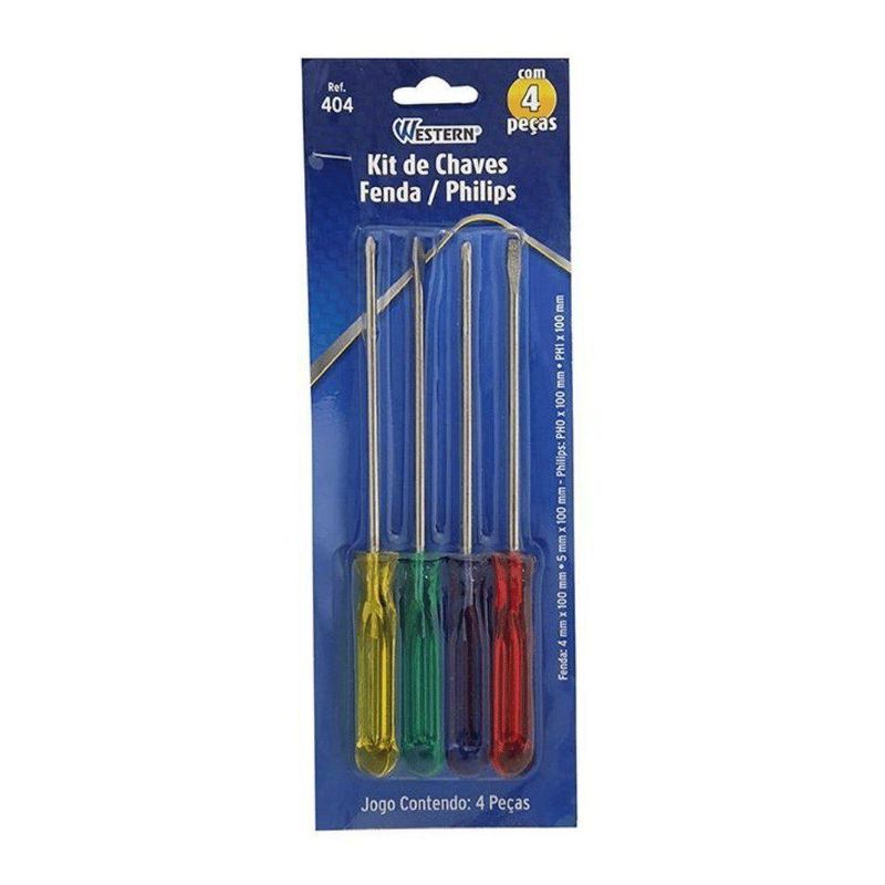 Jogo Chaves Fenda Phillips 4 Peças WesternOrganize suas ferramentas com o Jogo de Chaves de Fenda e Philips Western, uma solução completa para suas necessidades de reparo.Este kit prático contém duas chaves de fenda, uma de 4mm x 100mm e outra de 5mm x 100mm, ambas ideais para apertar e soltar parafusos em diversos tipos de projetos. Para dar ainda mais versatilidade, você também terá duas chaves Philips, PH0 x 100mm e PH1 x 100mm, que são essenciais para trabalhar com parafusos de cabeça cruzada. Fabricadas com aço carbono, as chaves garantem resistência e durabilidade para uso em trabalhos diários. Os cabos em cores vibrantes - amarelo, azul, verde e vermelho - facilitam a identificação e escolha da chave ideal para cada parafuso. Soldados com AS (Acrilonitrila de estireno), os cabos oferecem excelente aderência e conforto, reduzindo o risco de escorregar durante o uso. Com este kit, você terá as ferramentas certas nas mãos para concluir seus projetos com segurança e precisão. A embalagem blister garante proteção e facilita o armazenamento, tornando o Jogo de Chaves Western uma ótima escolha para quem busca praticidade e qualidade.Organize suas ferramentas com o Jogo de Chaves de Fenda e Philips Western, uma solução completa para suas necessidades de reparo.Este kit prático contém duas chaves de fenda, uma de 4mm x 100mm e outra de 5mm x 100mm, ambas ideais para apertar e soltar parafusos em diversos tipos de projetos. Para dar ainda mais versatilidade, você também terá duas chaves Philips, PH0 x 100mm e PH1 x 100mm, que são essenciais para trabalhar com parafusos de cabeça cruzada. Fabricadas com aço carbono, as chaves garantem resistência e durabilidade para uso em trabalhos diários. Os cabos em cores vibrantes - amarelo, azul, verde e vermelho - facilitam a identificação e escolha da chave ideal para cada parafuso. Soldados com AS (Acrilonitrila de estireno), os cabos oferecem excelente aderência e conforto, reduzindo o risco de escorregar durante o uso. Com este kit, você terá as ferramentas certas nas mãos para concluir seus projetos com segurança e precisão. A embalagem blister garante proteção e facilita o armazenamento, tornando o Jogo de Chaves Western uma ótima escolha para quem busca praticidade e qualidade.
