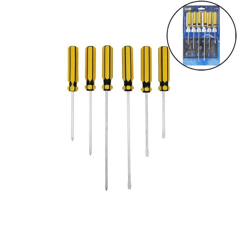 Jogo Chaves Fenda Phillips 6 Peças WesternVocê é profissional? Ama fazer trabalhos manuais? Com certeza precisa ter o Jogo de Chaves de Fenda e Philips Western com 6 peças para se manter sempre preparado! Composto por 3 chaves de fenda (1/8x3, 1/8x4 e 1/8x6) e 3 chaves Philips (1/8x3, 1/8x4 e 1/8x6), esse kit oferece a versatilidade para diversos reparos e ajustes em casa ou no trabalho.As hastes em aço vanadio garantem resistência e durabilidade, enquanto o PVC confere maior conforto durante o uso. Sua cor amarela vibrante facilita a localização na sua caixa de ferramentas, evitando perdas de tempo e frustrações. Essa combinação perfeita de robustez, praticidade e design inteligente torna o Jogo de Chaves de Fenda e Philips Western a escolha ideal para quem busca qualidade e eficiência.Adquira já o seu e domine qualquer reparo com precisão e segurança! As instruções de uso acompanham a embalagem para que você tenha sempre a melhor experiência com seus produtos Western.Você é profissional? Ama fazer trabalhos manuais? Com certeza precisa ter o Jogo de Chaves de Fenda e Philips Western com 6 peças para se manter sempre preparado! Composto por 3 chaves de fenda (1/8x3, 1/8x4 e 1/8x6) e 3 chaves Philips (1/8x3, 1/8x4 e 1/8x6), esse kit oferece a versatilidade para diversos reparos e ajustes em casa ou no trabalho.As hastes em aço vanadio garantem resistência e durabilidade, enquanto o PVC confere maior conforto durante o uso. Sua cor amarela vibrante facilita a localização na sua caixa de ferramentas, evitando perdas de tempo e frustrações. Essa combinação perfeita de robustez, praticidade e design inteligente torna o Jogo de Chaves de Fenda e Philips Western a escolha ideal para quem busca qualidade e eficiência.Adquira já o seu e domine qualquer reparo com precisão e segurança! As instruções de uso acompanham a embalagem para que você tenha sempre a melhor experiência com seus produtos Western.