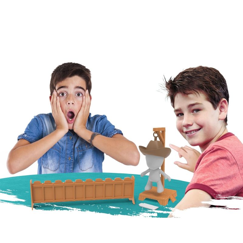 O clássico Jogo da Forca com um toque especial!Desafie amigos e familiares com este atemporal jogo de adivinhação de palavras: apresentando o Cowboy, o enforcado.NÃO DEIXE O COWBOY CAIR!Adicione as peças magnéticas uma a uma para cada letra errada adivinhada. Quando Cowboy estiver completamente montado, ele colapsa dramaticamente!Você consegue adivinhar a palavra misteriosa antes que seja tarde demais?Inclui 52 letras de papelão com bases removíveis, 1 suporte para as letras, 1 figura de enforcado de plástico removível e 1 base para o jogo.Tudo que você precisa para a diversão em grupo!Imagens meramente ilustrativas.