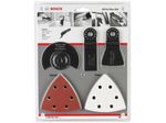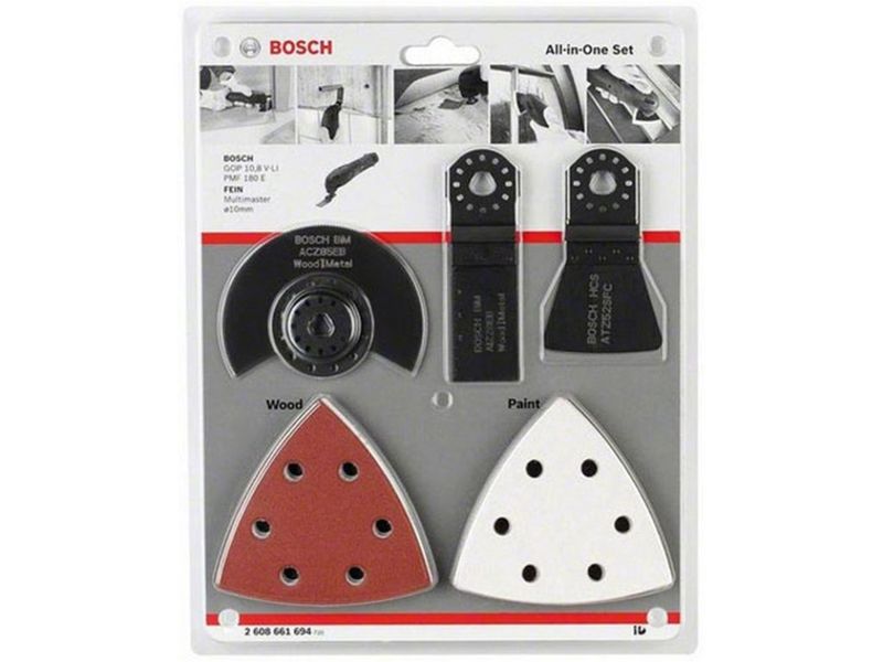 O Jogo universal de 13 peças é uma coleção para aplicações versáteis. Cada acessório Starlock é selecionado individualmente pelo seu valor e desempenho particular para diversas aplicações. O Jogo de 13 peças inclui lâminas para serrar, corte de imersão, lixar e raspar diversos materiais. Isto inclui uma lâmina de serra de segmento para rebarbar arestas das molduras de porta ao comprimento do chão, cortar moldes mais pequenos, laminado ou parquet e uma lâmina de serra de corte de imersão para cortar excessos na madeira. No Jogo também há lixas para lixar madeira e materiais pintados e um raspador para remover o material macio. O sistema de montagem produz a maior transferência de energia graças a uma ligação tridimensional apertada entre a máquina e o acessório. Para utilização com qualquer ferramenta multicortadora oscilante. Conteúdo da Embalagem: 1 Serra de segmentos ACZ85EB; 1 Lâmina de imersão AIZ32APB; 1 Espátula ATZ52SFC; 10 Folhas de lixa Wood and Paint