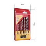 Precisão e desempenho em perfurações no concreto Levando mais durabilidade e resistência para os trabalhos com concreto, o Jogo de Brocas para Concreto Tramontina Master 8 Peças é ideal para quem busca precisão nos projetos. Desenvolvidas especialmente para perfuração em concreto, essas brocas são perfeitas para garantir um resultado eficaz e seguro.Versatilidade com 8 tamanhos diferentesAs brocas devem ser utilizadas com furadeiras de impacto no modo martelete, o que assegura maior eficiência durante o uso. O conjunto conta com oito tamanhos distintos — 3, 4, 5, 6, 7, 8, 9 e 10 mm — oferecendo versatilidade para diferentes aplicações e necessidades.
