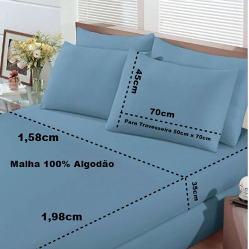 Jogo de Lençol Basic Liso em Malha Penteada (Fio 30/1) 100% Algodão e gramatura de 120g/m². Esta tecnologia de malha penteada proporciona a não geração de bolinhas, deixando o Lençol e a Fronha muito mais confortável e macio. O Lençol possui elástico em toda sua volta, se adaptando mais facilmente ao colchão e sendo mais prático no momento de colocá-lo no colchão, mantendo-o sempre muito bem esticado na cama. As opções de Cores da estação proporcionam a sua cama beleza com conforto e maciez que só a malha pode oferecer. A fronha possui o tamanho de 45cm x 70cm, padrão para travesseiros 50 x 70cm, deixando-a mais firme ao vestir o travesseiro.Jogo de Cama Buettner Queen Malha Basic Liso 3 Peças JeansTodas as informações divulgadas são de responsabilidade do fabricante/fornecedor.Marca: BuettnerClassificação: QueenTecido: MalhaComposição (Fios): Fio Penteado 30/1 - 100% AlgodãoGramatura: 120g/m2Conteúdo e Medidas: Jogo de Cama Simples - Queen - 03 Peças01 - Lençol Malha com Elástico Liso(1,58m x 1,98cm x 0,3528cm)02 - Fronha Malha Lisa(0,45cm x 0,70cm) Veste travesseiro (50cm x 70cm)Coleção / Sortimento: BasicProduto Licenciado por BoutonCor: JeansFabricante: BoutonReferencia: 286344Código de Barra: 7892409286344Garantia(Fabricante): Contra Defeito de Fabricação .Imagens Meramente IlustrativasINFORMAÇÕES IMPORTANTES: Item composto apenas por 01 Lençol + 02 Fronha,os demais itens são meramente decorativos e NÃO fazem parte do conteúdo da embalagem.Aviso : - Todas as medidas são valores aproximados e podem sofrer alguma variação.- As cores podem sofrer uma pequena variação, dependendo do lote do produto e das configurações do seu computador