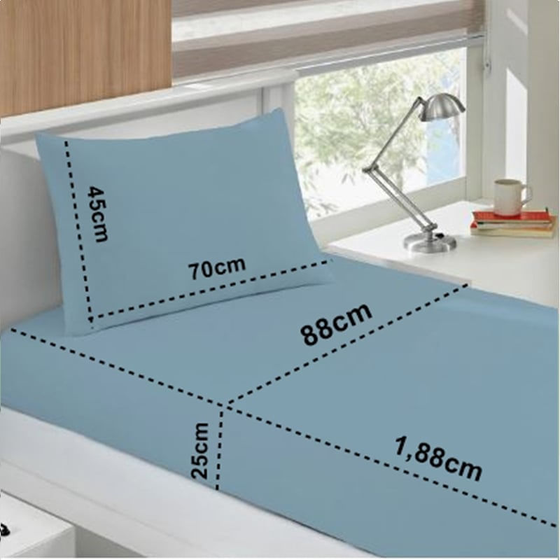 Jogo de Lençol Basic Liso em Malha Penteada (Fio 30/1) 100% Algodão e gramatura de 120g/m². Esta tecnologia de malha penteada proporciona a não geração de bolinhas, deixando o Lençol e a Fronha muito mais confortável e macio. O Lençol possui elástico em toda sua volta, se adaptando mais facilmente ao colchão e sendo mais prático no momento de colocá-lo no colchão, mantendo-o sempre muito bem esticado na cama. As opções de Cores da estação proporcionam a sua cama beleza com conforto e maciez que só a malha pode oferecer. A fronha possui o tamanho de 45cm x 70cm, padrão para travesseiros 50 x 70cm, deixando-a mais firme ao vestir o travesseiro.Jogo de Cama Buettner Solteiro Malha Basic Liso 2 Peças JeansTodas as informações divulgadas são de responsabilidade do fabricante/fornecedor.Marca: BuettnerClassificação: SolteiroTecido: MalhaComposição (Fios): Fio Penteado 30/1 - 100% AlgodãoGramatura: 120g/m2Conteúdo e Medidas: Jogo de Cama Simples - Solteiro - 02 Peças01 - Lençol Malha com Elástico Liso(88m x 1,88cm x 0,25cm)01 - Fronha Malha Lisa(0,45cm x 0,70cm) Veste travesseiro (50cm x 70cm)Coleção / Sortimento: BasicProduto Licenciado por BoutonCor: JeansFabricante: BoutonReferencia: 286184Código de Barra: 7892409286184Garantia(Fabricante): Contra Defeito de Fabricação .Imagens Meramente IlustrativasINFORMAÇÕES IMPORTANTES: Item composto apenas por 01 Lençol + 01 Fronha,os demais itens são meramente decorativos e NÃO fazem parte do conteúdo da embalagem.Aviso : - Todas as medidas são valores aproximados e podem sofrer alguma variação.- As cores podem sofrer uma pequena variação, dependendo do lote do produto e das configurações do seu computador