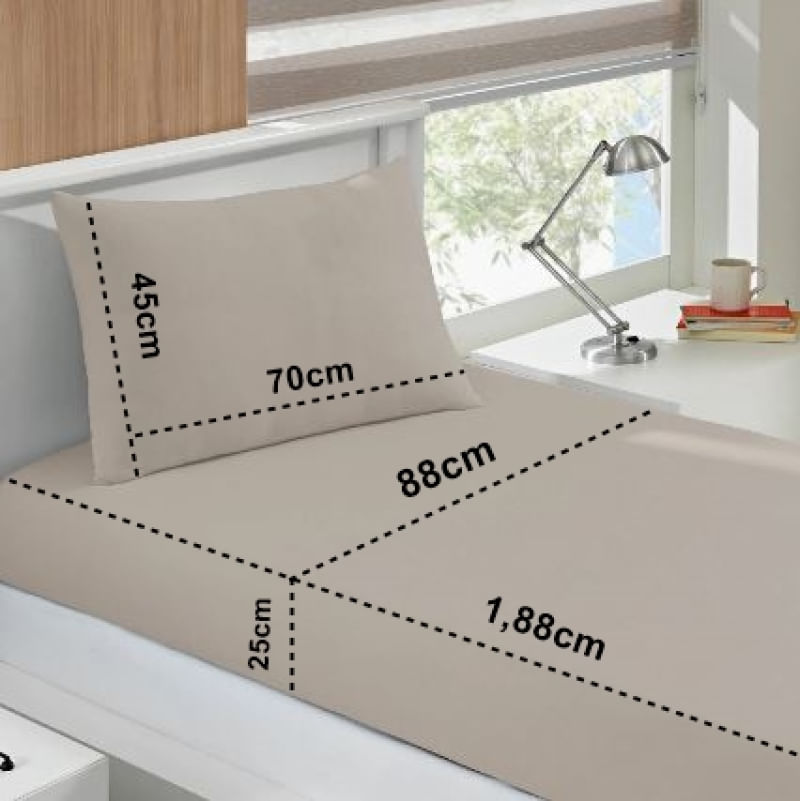 Jogo de Lençol Basic Liso em Malha Penteada (Fio 30/1) 100% Algodão e gramatura de 120g/m². Esta tecnologia de malha penteada proporciona a não geração de bolinhas, deixando o Lençol e a Fronha muito mais confortável e macio. O Lençol possui elástico em toda sua volta, se adaptando mais facilmente ao colchão e sendo mais prático no momento de colocá-lo no colchão, mantendo-o sempre muito bem esticado na cama. As opções de Cores da estação proporcionam a sua cama beleza com conforto e maciez que só a malha pode oferecer. A fronha possui o tamanho de 45cm x 70cm, padrão para travesseiros 50 x 70cm, deixando-a mais firme ao vestir o travesseiro.Jogo de Cama Buettner Solteiro Malha Basic Liso 2 Peças TrigoTodas as informações divulgadas são de responsabilidade do fabricante/fornecedor.Marca: BuettnerClassificação: SolteiroTecido: MalhaComposição (Fios): Fio Penteado 30/1 - 100% AlgodãoGramatura: 120g/m2Conteúdo e Medidas: Jogo de Cama Simples - Solteiro - 02 Peças01 - Lençol Malha com Elástico Liso(88m x 1,88cm x 0,25cm)01 - Fronha Malha Lisa(0,45cm x 0,70cm) Veste travesseiro (50cm x 70cm)Coleção / Sortimento: BasicProduto Licenciado por BoutonCor: TrigoFabricante: BoutonReferencia: 309951Código de Barra: 7892409309951Garantia(Fabricante): Contra Defeito de Fabricação .Imagens Meramente IlustrativasINFORMAÇÕES IMPORTANTES: Item composto apenas por 01 Lençol + 01 Fronha,os demais itens são meramente decorativos e NÃO fazem parte do conteúdo da embalagem.Aviso : - Todas as medidas são valores aproximados e podem sofrer alguma variação.- As cores podem sofrer uma pequena variação, dependendo do lote do produto e das configurações do seu computador