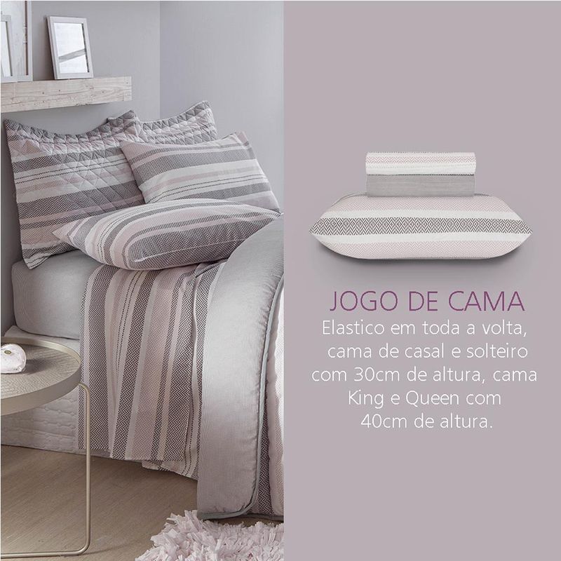 Jogo de Cama Duplo Casal 4 peças 140 Fios 250x220cm Isis Realce Premium Sultan Uma cama bem arrumada deve começar por um lindo jogo de lençol. Ele serve para proteger e decorar sua cama e é muito mais vantajoso do que comprar peças avulsas. O jogo de cama Realce Premium conta com estampas modernas e super alegres que vão harmonizar perfeitamente com sua decoração, afinal, um jogo de cama serve para embelezar seu ambiente e trazer muito conforto às suas noites de sono. Todas as peças combinam entre si e coordenam perfeitamente. Um grande diferencial deste produto em relação aos demais de sua categoria é que ele seca super rápido devido à composição de seu tecido e não desbotam. Ele é leve e muito prático para o dia-a-dia. Decore sua cama com elegância e charme, criando um ambiente lindo. Uma cama dos sonhos pode ser acessível desde que os produtos sejam escolhidos corretamente. Essa experiência pode ser vivida na sua casa. Conteúdo da embalagem: 1 Lençol de cima 250x220cm (CxL) 1 Lençol de baixo com elástico para colchão de 188x138cm até 30cm de altura (CxLxA) 2 Fronhas 70x50cm (CxL) *Não acompanha Colcha/Edredom e demais itens de decoração da foto. Com algodão 140 Fios Tamanho maior Cor: Branco/Rosa/Cinza Composição: 50% Algodão e 50% Poliéster Marca: Sultan Linha: Realce Premium Modelo: Isis Instruções de Lavagem: Lavar à temperatura máxima de 30°C Não usar alvejante à base de cloro Secagem em tambor temperatura mínima Passar à temperatura máxima de 110°C Não limpar à seco Limpeza a úmido profissional em processo normal Devido à diferença de luz e tela do seu aparelho, a cor do item pode ser ligeiramente diferente das imagens. SMB