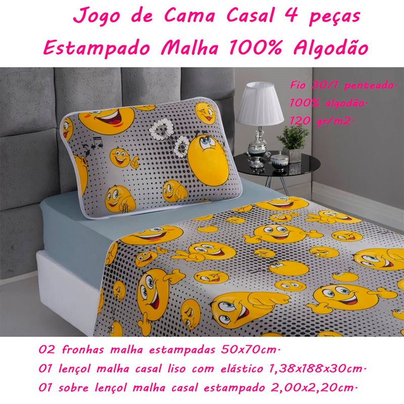 Chegou na KazzaVip o Jogo de Cama 4 Peças Estampado da Linha Kids Vivaldi, é muito versátil, pois você pode usar o conjunto ou as peças separadas, pode usar a fronha sobre qualquer lençol ou até como uma decoração para a cama, o lençol com elástico é liso e se torna uma peça coringa para sua casa. É um produto de alta qualidade, durável e resistente. Você irá se surpreender com a qualidade e a beleza desse jogo de cama.Jogo de Cama KazzaVip Casal Malha Estampado 100% Algodão Smile 4 peças Kids CinzaTodas as informações divulgadas são de responsabilidade do fabricante/fornecedor.Marca: VivaldiClassificação: CasalTecido: MalhaComposição (Fios): 100% Algodão - Fio 30/1 - PenteadoGramatura: 120g/m2Conteúdo e Medidas: Jogo de Cama Malha Estampado - Smile - 04 Peças01 - Lençol Malha com Elástico Liso (1,38m x 1,88m x 30cm)01 - Sobre lençol Malha Estampado( 2,00m x 2,20m )02 - Fronha Malha Estampada c/ Viés (50cm x 70cm)Coleção / Sortimento: KidsMais Pratico - Elástico Contorna todo o LençolEstampado: SimCor: CinzaFabricante: Sul BrasilReferencia: 3447Código de Barras: 7899595896234Garantia(Fabricante): Contra Defeito de FabricaçãoObservação: Informações Sujeitas a Alterações sem Aviso Prévio.Imagens Meramente IlustrativasINFORMAÇÕES IMPORTANTES: Item composto apenas por 01 Lençol,01 Sobre lençol Estampado e 02 Fronhas Estampadas, os demais itens são meramente decorativos e NÃO fazem parte do conteúdo da embalagem.Aviso : - Todas as medidas são valores aproximados e podem sofrer alguma variação.- As cores podem sofrer uma pequena variação, dependendo do lote do produto e das configurações do seu computador