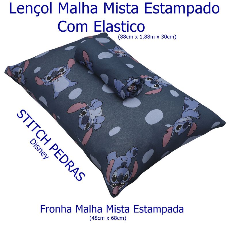 Chegaram os novos jogos de cama da Disney, com estampas super alegres e clássicas, irão deixar o quarto da criançada ou adultos ainda mais aconchegante e descontraído.Jogo de Cama Portallar Solteiro Malha Mista Estampado Disney Stitch Pedras 2 Pçs AzulTodas as informações divulgadas são de responsabilidade do fabricante/fornecedor.Marca: PortallarClassificação: SolteiroTecido: Malha MistaComposição (Fios): 70% Algodão / 30% PoliésterConteúdo e Medidas: Jogo de Cama Malha Mista Estampado - Stitch Pedras - 02 Peças01 Lençol Malha Misto Estampado Com Elástico (88cm x 1,88m x 30cm)01 Fronha Malha Mista Estampada (48cm x 68cm) (Para travesseiro até 50cm x 70cm) Coleção / Sortimento: Linha Disney KidsProduto Licenciado por PortallarEstampado: SimCor: AzulFabricante: PortallarReferencia: 0310505Código de Barras: 7908658819490Garantia(Fabricante): Contra Defeito de FabricaçãoImagens Meramente IlustrativasINFORMAÇÕES IMPORTANTES: Item composto apenas por 01 Lençol + 01 Fronha, os demais itens são meramente decorativos e NÃO fazem parte do conteúdo da embalagem.Aviso : - Todas as medidas são valores aproximados e podem sofrer alguma variação.- As cores podem sofrer uma pequena variação, dependendo do lote do produto e das configurações do seu computador