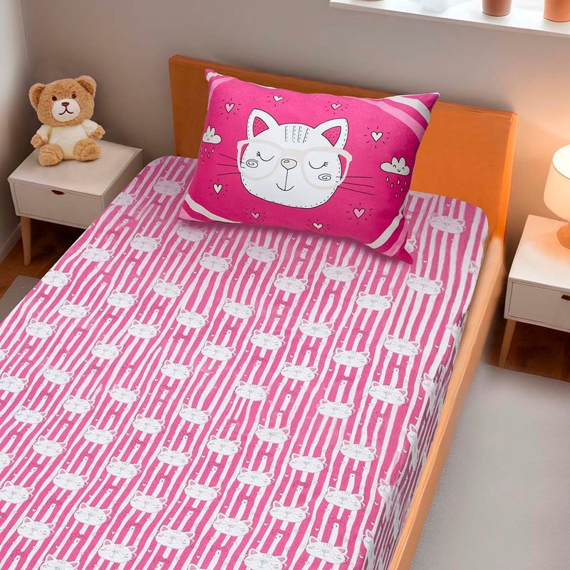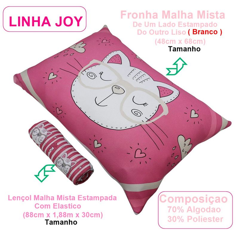 A coleção Joy da PortalLar traz estampas divertidas e inspiradas no dia a dia e dos interesses da criançada. São diversas estampas para todos os estilos. Este jogo de cama vai deixar o quarto da criançada muito mais divertido e elegante, transformando em um ambiente alegre e motivador. Temos certeza que elas irão adorar. Além das estampas serem divertidas deixando a imaginação da criançada fluir, o jogo de cama proporciona muito mais conforto nas noites de sono.Jogo de Cama Portallar Solteiro Malha Mista Joy Gatinhos 2 peças PinkTodas as informações divulgadas são de responsabilidade do fabricante/fornecedor.Marca: PortallarClassificação: SolteiroTecido: Malha MistaComposição (Fios): 70% Algodão e 30% PoliésterConteúdo e Medidas: Jogo de Cama Malha Mista Estampado - Gatinhos - 02 Peças01 Lençol Malha Mista Estampado Com Elástico (88cm x 1,88m x 30cm)01 Fronha Malha Mista Estampa Localizada(48cm x 68cm) (Para travesseiro até 50cm x 70cm)Fronha: Frente Estampada e Verso Liso BrancoColeção / Sortimento: Linha Portal JoyProduto Licenciado por PortallarEstampado: SimCor: PinkFabricante: PortallarReferencia: 0310495Código de Barras: 7908658819162Garantia(Fabricante): Contra Defeito de FabricaçãoImagens Meramente IlustrativasINFORMAÇÕES IMPORTANTES: Item composto apenas por 01 Lençol + 01 Fronha, os demais itens são meramente decorativos e NÃO fazem parte do conteúdo da embalagem.Aviso : - Todas as medidas são valores aproximados e podem sofrer alguma variação.- As cores podem sofrer uma pequena variação, dependendo do lote do produto e das configurações do seu computador