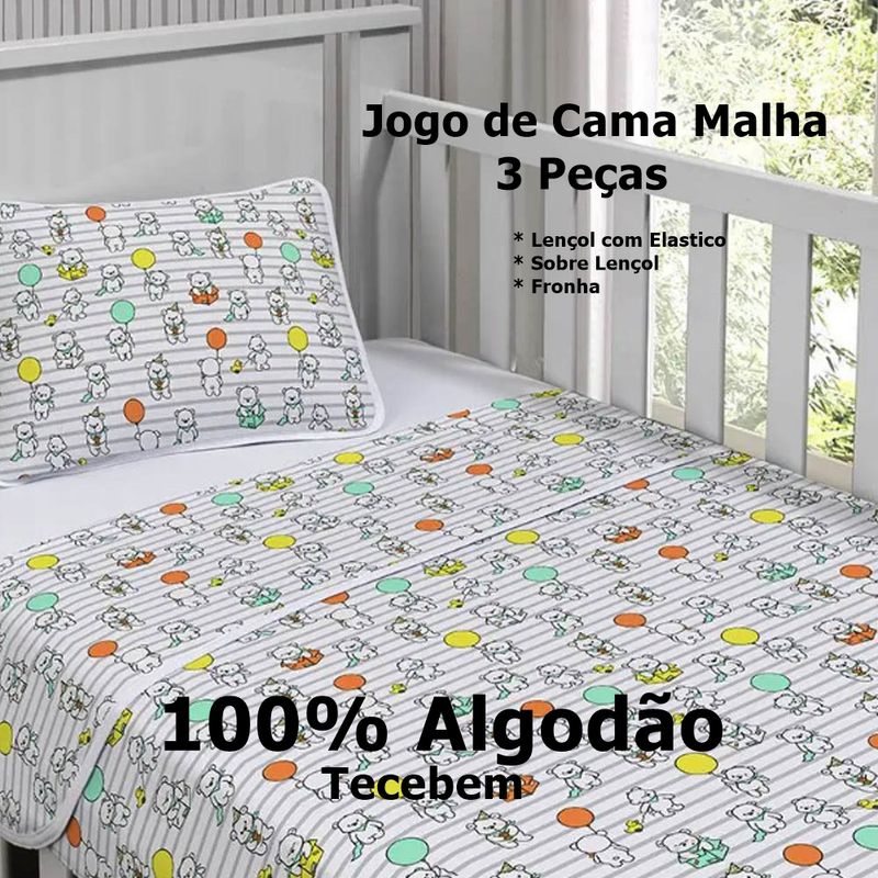Cama, Mesa e BanhoCamaJogo de Cama para BebêJogo de Cama Tecebem Malha Berço Estampado Humor 3 Peças Branco