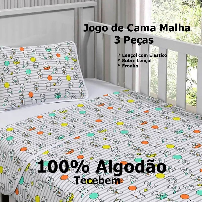 O Jogo de Cama Baby da Tecebem é confeccionado em malha puro algodão para proporcionar extremo conforto ao seu bebê. Desenvolvido em lindas cores,Estampas e modelos, facilitando seu dia a dia. Produto de excelente qualidade, sua malha possui gramatura de 130g/m2 sendo super macia e confortável, além de não apresentar deformações com o tempo. Possui tratamento Anti-Pilling, sendo garantido contra formação de bolinhas.Jogo de Cama Tecebem Malha Berço Estampado Humor 3 Peças BrancoTodas as informações divulgadas são de responsabilidade do fabricante/fornecedor.Marca: TecebemClassificação: Jogo Baby BerçoTecido: MalhaComposição (Fios): 100% Algodão - Fio 30/1 PenteadoGramatura: 130g/m2Conteúdo e Medidas: Jogo de Cama Baby Berço Malha Estampado - Humor - 03 Peças.01 Lençol com Elástico Malha Liso (70cm x 130cm x 15cm)01 Sobre Lençol Malha Estampado (90cm x 170cm)01 Fronha Baby Malha Estampada Com Vies (34cm x 40cm)Produto Licenciado por TecebemColeção / Sortimento: Linha KinderEstampado: SimCor: BrancoFabricante: TecebemReferencia: 24760Código de Barra: 7892746358056Garantia(Fabricante): Contra Defeito de FabricaçãoImagens Meramente IlustrativasINFORMAÇÕES IMPORTANTES: Item composto apenas por 01 Lençol 01 Sobre lençol e 01 Fronha, os demais itens são meramente decorativos e NÃO fazem parte do conteúdo da embalagem.Aviso : - Todas as medidas são valores aproximados e podem sofrer alguma variação.- As cores podem sofrer uma pequena variação, dependendo do lote do produto e das configurações do seu computador.