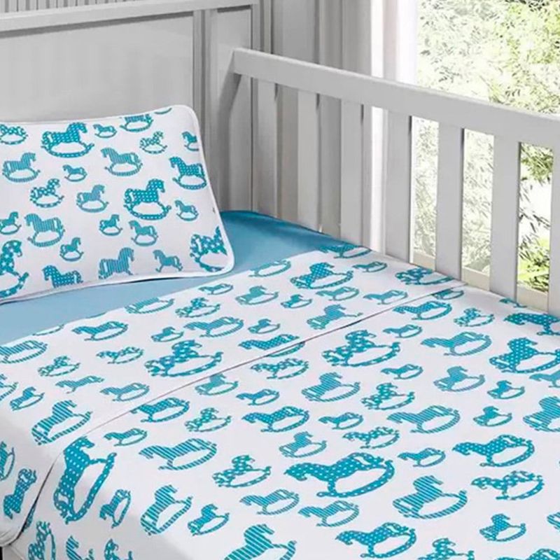 Jogo de Cama Tecebem Malha Berço Estampado Sucesso 3 Peças Azul
