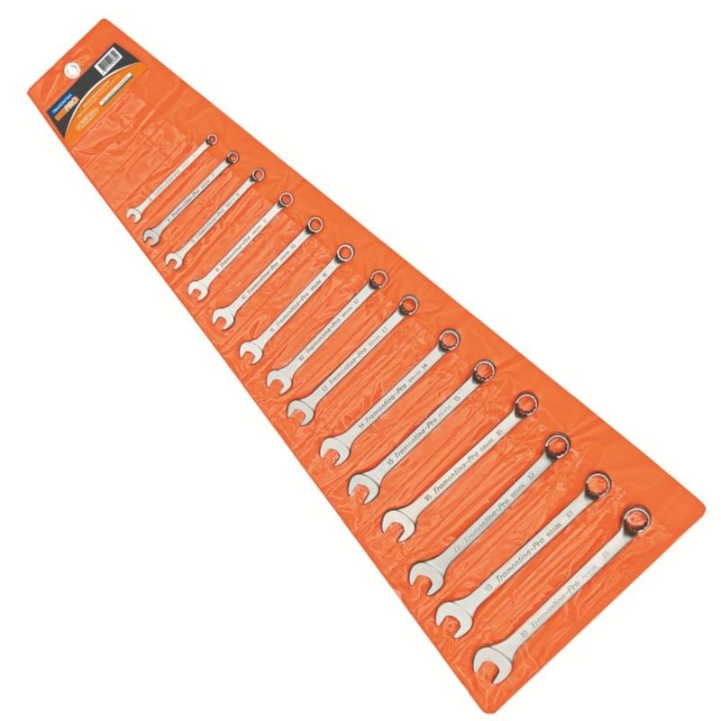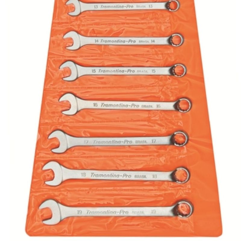 - Ideal para apertar e afrouxar parafusos ou porcas com perfil quadrado ou sextavado, as chaves da Tramontina PRO são fabricadas com matéria prima que garante alta resistência e durabilidade. Para perfeito funcionamento é importante usar a chave de tamanho compatível à cabeça da porca ou parafuso. Com as chaves da Tramontina PRO, quem passa aperto é o parafuso.Características:- As chaves de aperto são produzidas em aço ligado com cromo vanádio (Cr-V), e após submetidas a testes rigorosos de torque para atender a norma DIN 1711-1;- O novo perfil Hyper Drive, em alguns modelos de boca tipo estrela, reduz a fadiga das chaves, prolongando sua vida útil;- O teste de dureza é realizado em vários pontos para assegurar a resistência ao desgaste da chave durante o uso ininterrupto;- Alguns tipos de chaves de aperto são fornecidos em bitolas métricas e em polegadas, para os diversos fixadores disponíveis;- Afrouxar e apertar parafusos e porcas sextavadas e quadradas;- Cabeça usinada;- Pescoço longo;- Acabamento cromado;- Abertura da boca calibrada.Dados Técnicos:- Marca: Tramontina PRO;- Referência: 44660214;- Quantidade de itens: 14 Peças;- DIN 3113;- ISO 7738;- Peso: 1,39 kg.Recomendações de Uso:- Use óculos, luvas e outros equipamentos de proteção individual (EPIs) de acordo com a tarefa a ser executada;- Não golpeie as chaves, a não ser que sejam projetadas para este fim;- Sempre utilize uma chave de bitola correta para cada parafuso ou porca para que não haja folga, pois isso danifica a chave e o parafuso;- Mantenha a chave limpa para um melhor agarre, pois usá-la suja com graxa ou óleo pode causar acidentes;- Não use tubos ou extensões para obter mais torque;- Não altere a forma original das chaves;- Respeite o torque estabelecido por norma para cada tamanho de chaves;- Use a chave perpendicular ao eixo do parafuso e/ou porca. Isto aumenta a vida útil da ferramenta e torna a operação mais segura;- Armazene em local limpo e seco.Componentes Inclusos na Embalagem:- 01 Chave Combinada 10 mm Tramontina PRO (44660110);- 01 Chave Combinada 11 mm Tramontina PRO (44660111);- 01 Chave Combinada 12 mm Tramontina PRO (44660112);- 01 Chave Combinada 13 mm Tramontina PRO (44660113);- 01 Chave Combinada 14 mm Tramontina PRO (44660114);- 01 Chave Combinada 15 mm Tramontina PRO (44660115);- 01 Chave Combinada 16 mm Tramontina PRO (44660116);- 01 Chave Combinada 17 mm Tramontina PRO (44660117);- 01 Chave Combinada 18 mm Tramontina PRO (44660118);- 01 Chave Combinada 19 mm Tramontina PRO (44660119);- 01 Chave Combinada 6 mm Tramontina PRO (44660106);- 01 Chave Combinada 7 mm Tramontina PRO (44660107);- 01 Chave Combinada 8 mm Tramontina PRO (44660108);- 01 Chave Combinada 9 mm Tramontina PRO (44660109).SKU: 15009458