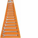 Informações Gerais: Cabeça usinada. Pescoço curto. Acabamento cromado. Abertura da boca calibrada. DIN 3113. ISO 7738. As chaves de aperto são produzidas em aço ligado com cromo vanádio (Cr-V), e apos submetidas a testes rigorosos de torque para atender a norma DIN 1711-1. O novo perfil Hyper Drive, em alguns modelos de boca tipo estrela, reduz a fadiga das chaves, prolongando sua vida útil. O teste de dureza é realizado em vários pontos para assegurar a resistência ao desgaste da chave durante o uso ininterrupto. Alguns tipos de chaves de aperto são fornecidos em bitolas métricas e em polegadas, para os diversos fixadores disponíveis. Afrouxar e apertar parafusos e porcas sextavadas e quadradas. As ferramentas são produzidas e testadas conforme normas específicas. Recomendações de Uso: Use óculos, luvas e outros equipamentos de proteção individual (EPIs) de acordo com a tarefa a ser executada. Não golpeie as chaves, a não ser que sejam projetadas para este fim. Sempre utilize uma chave de bitola correta para cada parafuso ou porca para que não haja folga, pois isso danifica a chave e o parafuso. Mantenha a chave limpa para um melhor agarre, pois usá-la suja com graxa ou óleo pode causar acidentes. Não use tubos ou extensões para obter mais torque. Não altere a forma original das chaves. Respeite o torque estabelecido por norma para cada tamanho de chaves. Use a chave perpendicular ao eixo do parafuso e/ou porca. Isto aumenta a vida útil da ferramenta e torna a operação mais segura. Armazene em local limpo e seco.