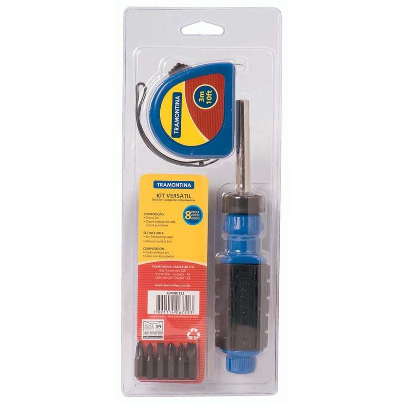 Um conjunto que vai ser muito útil na sua casa!Esse jogo de ferramentas, da Tramontina, conta com itens produzidos e testados conforme normas específicas.Vêm com peças fundamentais como: trena de 3 metros e chave com ponteiras.