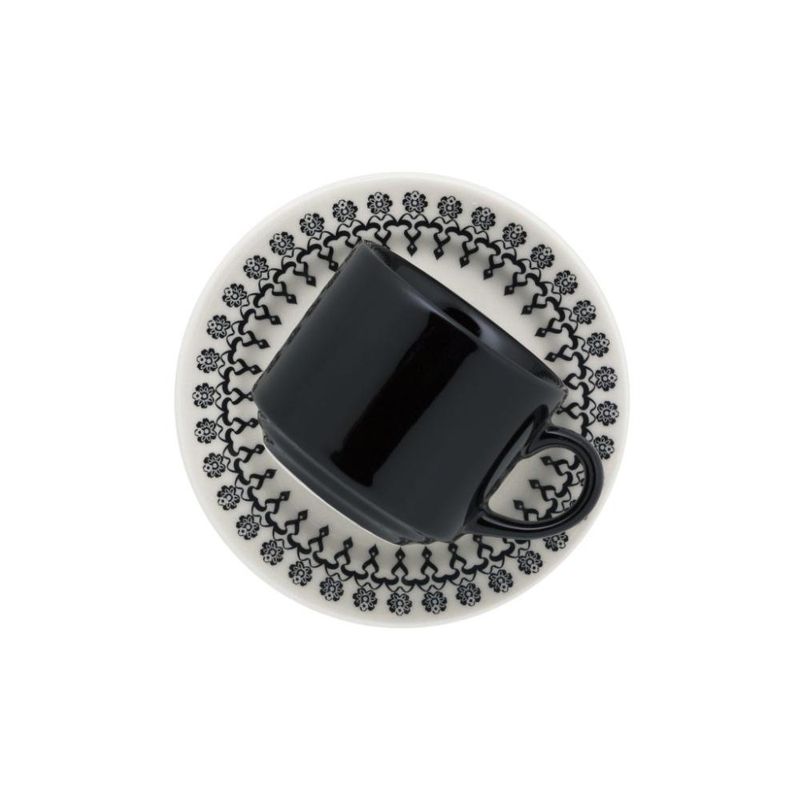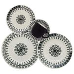 Jogo de Jantar 20 Peças Cerâmica Chá Folk Biona A cor preta é básica e neutra, um verdadeiro curinga na hora de montar a mesa. Nessa louça, colocamos a cor preta numa estampa mais alegre e jovial, perfeita para quem prefere um formato de pratos tradicional com uma decoração mais alegre. A xícara preta, sem decoração, cria uma linda composição com as demais peças. 4 pratos rasos com 24 cm de diâmetro, 4 pratos fundos com 22 cm de diâmetro, 4 pratos para sobremesa com 19 cm de diâmetro, 4 xícaras para chá (180 ml de capacidade) com pires (16,5 cm de diâmetro). Descrição do produtoMarca: BionaResistente a micro-ondas, Resistente a lava-louçasLinha: FolkMaterial: Cerâmica Imagens meramente ilustrativas, todos os itens que ambientam o produto não estão inclusos.