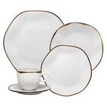 Jogo de Jantar 20 Peças Porcelana Chá Maresia Oxford O wabi-sabi é um conceito japonês que valoriza o imperfeito, do processo de criação até o seu acabamento. Exaltar o irregular, o impermanente e o incompleto é uma homenagem da linha Ryo à esta sabedoria japonesa. A coleção Ryo Maresia traz uma composição que valoriza a beleza das praias, o toque da areia e o frescor do mar. As peças do aparelho de jantar Ryo Maresia recebem aplicação de esmalte com pigmentação e de um filete reagente aplicado de forma manual garantindo a unicidade de cada peça. A coleção Ryo Maresia dispõe ainda de peças complementares, como canecas, travessas e tigelas para deixar sua mesa mais completa. 4 pratos rasos com 27,5 cm de diâmetro, 4 pratos fundos com 22,5 cm de diâmetro e 4,5 cm de altura, 4 pratos para sobremesa com 21,5 cm de diâmetro, 4 xícaras para chá (220 ml de capacidade) com pires (16 cm de diâmetro). Descrição do produtoMarca: OxfordResistente a micro-ondasResistente a lava-louçasLinha: Ryop MaresiaMaterial: Porcelana Imagens meramente ilustrativas, todos os itens que ambientam o produto não estão inclusos.