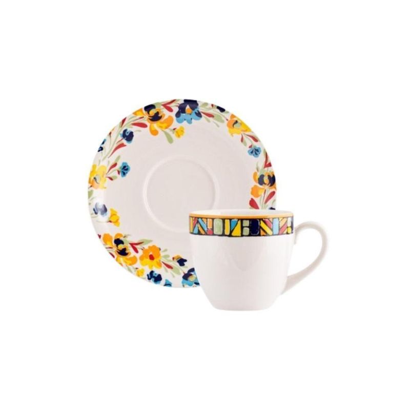 Jogo De Jantar 40 Peças Etnico Porcelana Real By SchmidtJogo de Jantar 40 Peças Etnico Porcelana Real By SchmidtA qualidade de sempre, agora com algo mais: um novo verniz que deixa as peças ainda mais brilhantes. A linha de louças REAL trás o que há de novo à mesa. A louça do novo tempo produzida pela Porcelana Schmidt.Cores e formas geométricas em uma coleção alegre e atual.Descrição do produtoMarca: Porcelana Real By SchmidtMaterial: CerâmicaModelo: EtnicoItens inclusos8x Pratos rasos - 26cm8x Pratos sobremesa - 19cm8x Bowls - 500ml8x Xícaras de chá - 230ml8x Pires chá - 15cmImagens meramente ilustrativas, todos os itens que ambientam o produto não estão inclusos. Marca: Porcelana Real By Schmidt | Cor predominante: Branco | Fabricante: Porcelana Real By Schmidt | Origem: Nacional | Condição do Item: Novo | Modelo: Jogo de jantar | É Kit: Sim | É apto para lava-louças: Sim | Linha: Etnico | Quantidade de peças: 40 | Material: Cerâmica | Nome do desenho: Etnico | Tipo do jogo: Aparelho de jantar