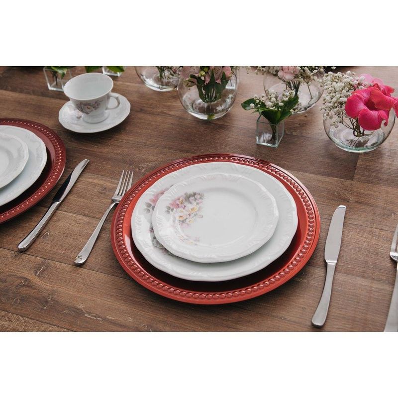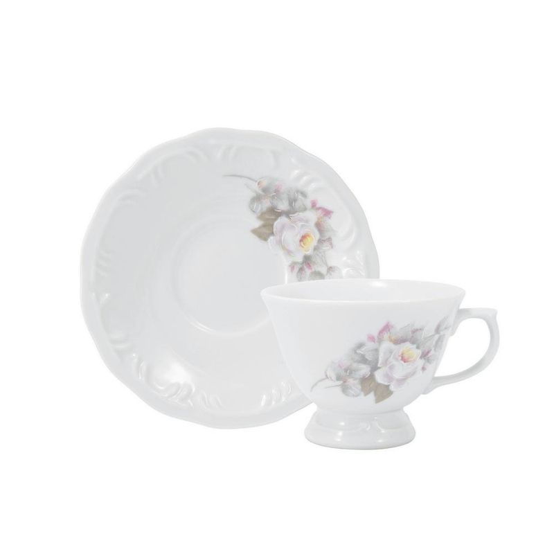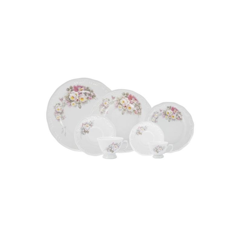 Jogo de Jantar 42 Peças Chá Café Eterna Porcelana Schmidt A delicadeza das rosas e a sutileza dos tons pásteis é o que define uma das decorações mais tradicionais da marca. O serviço de jantar 42 pçs é composto por 6 pratos de sobremesa com 19 cm, 6 pratos fundos com 23 cm, 6 pratos rasos com 26 cm, 6 pires para xícara de chá, 6 xícaras de chá de 200 ml, 6 pires para xícara de café e 6 xícaras de café 80 ml Descrição do produtoMarca: Porcelana SchmidtDecoração: EternaConteúdo do aparelho de jantar:6x Prato raso6x Prato fundo6x Pires e xícara de café6x Pires e xícara de chá6x Prato de sobremesaPeso: 15 kgPeças podem ser usadas no refrigerador, micro-ondas e lava-louças. Imagens meramente ilustrativas, todos os itens que ambientam o produto não estão inclusos.