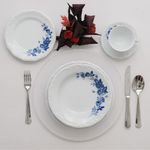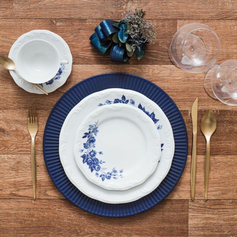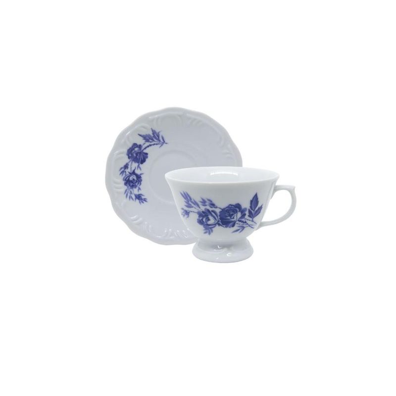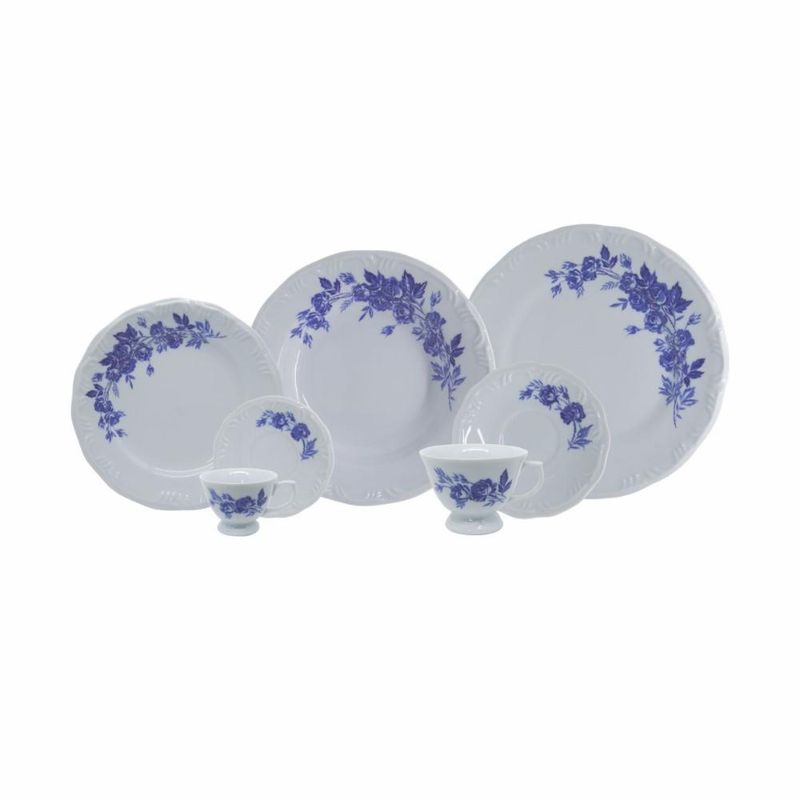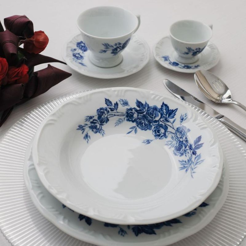 Jogo de Jantar 84 Peças Chá Café Cora Porcelana Schmidt As rosas são marcas registradas das Porcelanas mais clássicas. Rosas azuis então, nem se fala. Todo mundo precisa ter um aparelho clássico que arranca suspiros quando colocado na mesa. É isso que você vai conseguir com a decoração Cora! Surpreenda seus convidados!O jogo de jantar é composto por 12 Pratos Rasos 26 cm, 12 Pratos Fundos 23 cm, 12 Pratos de Sobremesa 19 cm, 12 Pires de Chá 14,5 cm, 12 Xícaras de Chá 200 ml, 12 Pires Café 11,3 cm e 12 Xícaras de Café 70 ml. Descrição do produtoMarca: Porcelana SchmidtDecoração: CoraConteúdo do jogo de jantar:12x Pratos Rasos 26 cm12x Pratos Fundos 23 cm12x Pratos de Sobremesa 19 cm12x Pires de Chá 14,5 cm12x Xícaras de Chá 200 ml12x Pires Café 11,3 cm 12x Xícaras de Café 70 mlPeças podem ser usadas no refrigerador, micro-ondas e lava-louças. Imagens meramente ilustrativas, todos os itens que ambientam o produto não estão inclusos.