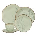 A Beleza na Imperfeição: Aparelho Oxford Ryo Bambu O Aparelho de Jantar e Chá Oxford Ryo Bambu é uma homenagem à estética da cultura japonesa. Inspirado na filosofia Wabi-Sabi, que busca a beleza na imperfeição, este conjunto traz um formato orgânico único. A decoração celebra o Bambu, elemento central no Japão, simbolizando força e flexibilidade. A estética vintage é alcançada através de uma sofisticada técnica manual de esmalte reagente, garantindo que a estampa de cada peça seja exclusiva. Feito em porcelana resistente nas cores marrom e verde, este conjunto proporciona um toque de autenticidade e tranquilidade. Arte Japonesa e Praticidade em Destaque Estilo Wabi-Sabi: O formato orgânico e a decoração em bambu trazem a elegância discreta da filosofia japonesa. Toque Artesanal Exclusivo: A técnica de esmalte reagente manual garante que a tonalidade e os padrões variem sutilmente. Porcelana Resistente: O material oferece durabilidade e beleza. Funcionalidade Total: Todas as peças são totalmente seguras para micro-ondas e lava-louças. Especificações Técnicas Conteúdo da Embalagem: 6 pratos rasos (27,5 cm) / 6 pratos fundos (22,5 cm) / 6 pratos de sobremesa (21,5 cm) / 6 xícaras de chá (220 ml) / 6 pires (16 cm). Material: Porcelana. Linha/Decoração: Ryo Bambu (Estampado com Esmalte Reagente). Uso: Resistente a Micro-ondas e Lava-louças. Cor: Marrom e Verde. Formato: Orgânico.