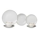 Indispensável para refeições do dia a dia com muito mais design. Esse item irá se destacar marcando estilo e personalidade na composição de sua mesa posta. Para limpeza, utilize esponja macia e sabão, não use produtos abrasivos. Composição: 06 Pratos Rasos 06 Pratos Fundos 06 Pratos de Sobremesa 06 Xícaras de Café 06 Pires de Café 06 Xícaras de Chá 06 Pires de Chá Material: Porcelana